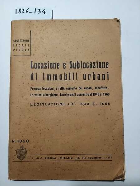 (Collana : Collezione legale Pirola) Legislazione dal 1943 al 1955 in materia di locazione e sublocazione - DETTAGLIO DELLE CONDIZIONI : Coperta e pagine ingiallite e con numerose fioriture - (1.XIV.4).
