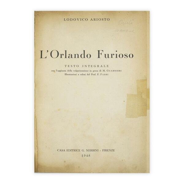 Autore: Lodovico Ariosto Titolo: L'Orlando Furioso Edizione: Casa Editrice G.Nerbini - Firenze 1948 Dimensioni: 19,5 x 27 cm c.a. Peso: 1,281 kg Pagine: 585 Copertina: Cartonato Condizioni: Ottime come da foto