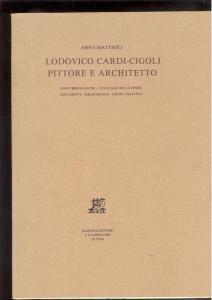 IN 8° gr. ( cm.28 X 20 ), pp.587. COPERTINA EDITORIALE CON TITOLO. ILLUSTRAZIONE in b/n.a pp. IN ANTIPORTA, a pg.448, ALBERO GENEALOGICO DELLA FAMIGLIA CARDI - CIGOLI f.t.+ v.r.<BR>L'OPERA CONTIENE: FONTI BIOGRAFICHE, CATALOGO DELLE OPERE, DOCUMENTI, BIBLIOGRAFIA, INDICI ANALITICI. LA VITA DEL CIGOLI E' TRATTA DAL MANOSCRITTO DEL 1628 CONSERVATO AL GABINETTO DEI DISEGNI E STAMPE ANNESSO ALLA GALLERIA DEGLI UFFIZI DI FIRENZE: CODICE 2660 A, cc.1 r. - 5 v. LODOVICO CARDI - CIGOLI ( CIGOLI DI SAN MINIATO 1559 - ROMA 1613 ), PITTORE, ARCHITETTO, SCULTORE. FU ALLIEVO A FIRENZE DI ALESSANDRO ALLORI E BERNARDO BUONTALENTI. NEGLI ULTIMI ANNI, FU A ROMA DURANTE IL PONTIFICATO DI PAPA PAOLO V BORGHESE. FU COMPAGNO DI STUD E GRANDE<BR>AMICO DI DI GALILEO. ACCADEMICO DELLA CRUSCA FRA I PRIMI, CAVALIERE DI MALTA. OPERA PATROCINATA DALL'ACCADEMIA DEGLI EUTELETI E IL PARZIALE CONTRIBUTO DELLA CASSA DI RISPARMIO DI SAN MINIATO. OTTIMA CONSERVAZIONE, INTONSO.RARO. ID, 6523