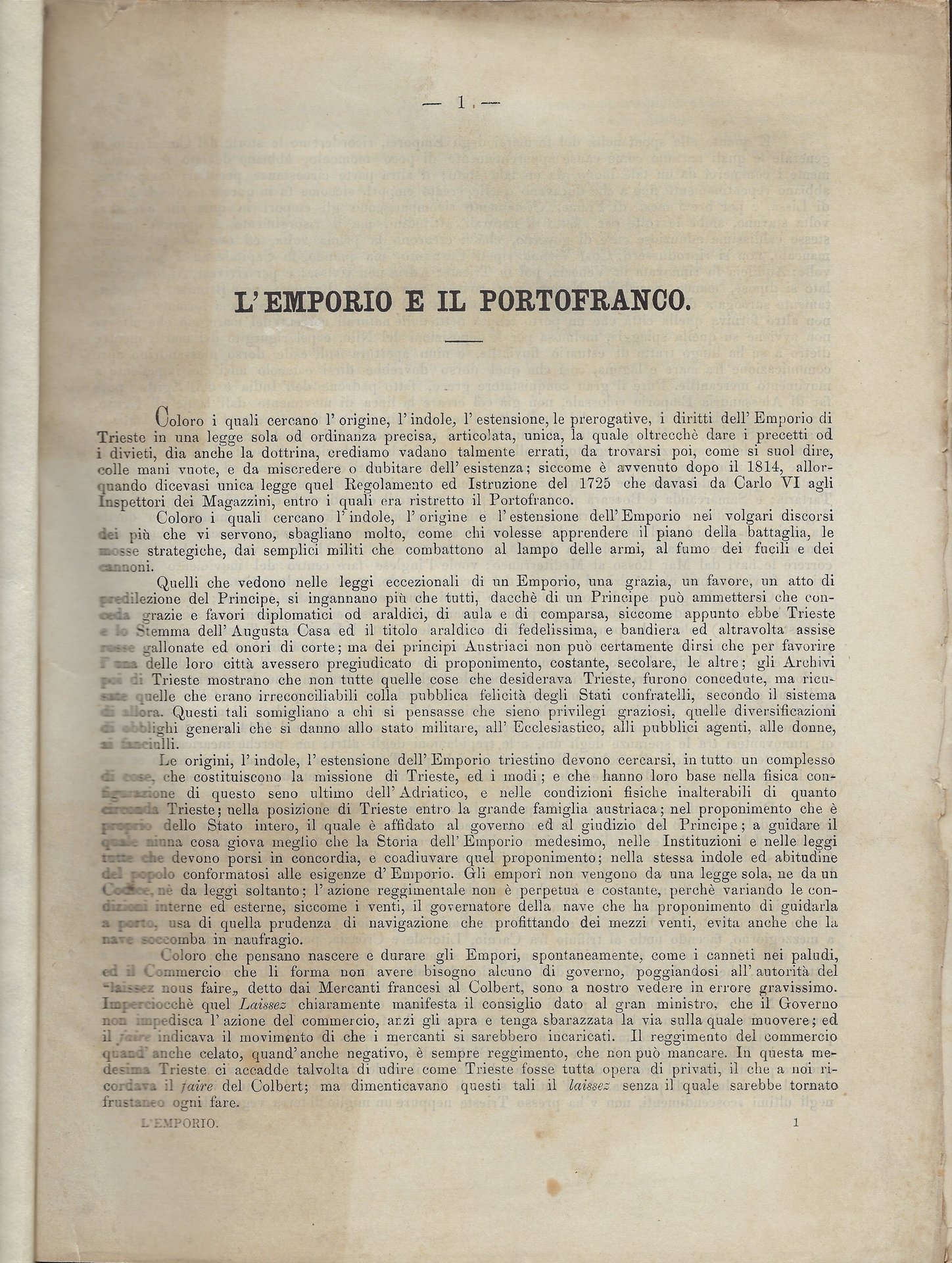 L'opera tratta dell'emporio triestino, della sua storia. Vi sono anche raccolte le patenti, le ordinanze ed i regolamenti.