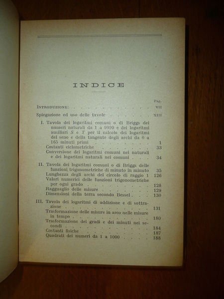 DESCRIZIONE: Hoepli Ed. Milano 1925 XIX^ Ed., br. ed. senza sovracc., pp. XXXII+195 in 16°. Indice completo in foto. CONDIZIONI: Ottime. Il vecchio proprietario, un matematico, era stato Preside di Liceo, e Docente Universitario. Questo libro proviene dalla sua importante biblioteca privata, per cui alla prima bianca sono riportati i codici di catalogazione oltre all’etichetta sul dorso. PESO / WEIGHT: 193 gr. without package