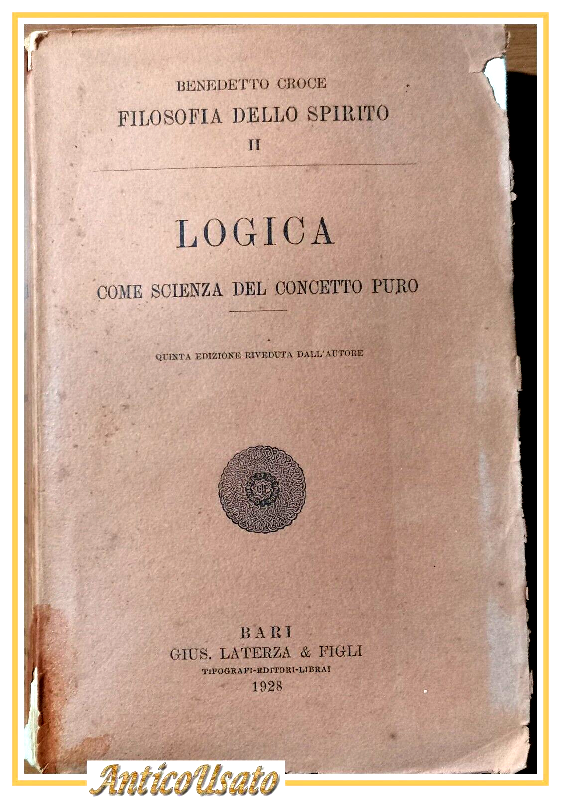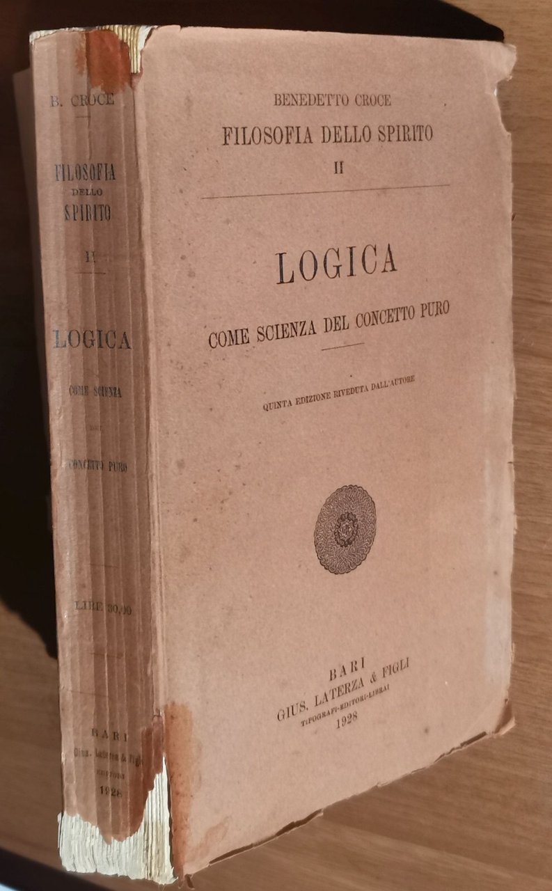 LOGICA COME SCIENZA DEL CONCETTO PURO di Benedetto Croce 1928 Laterza Libro