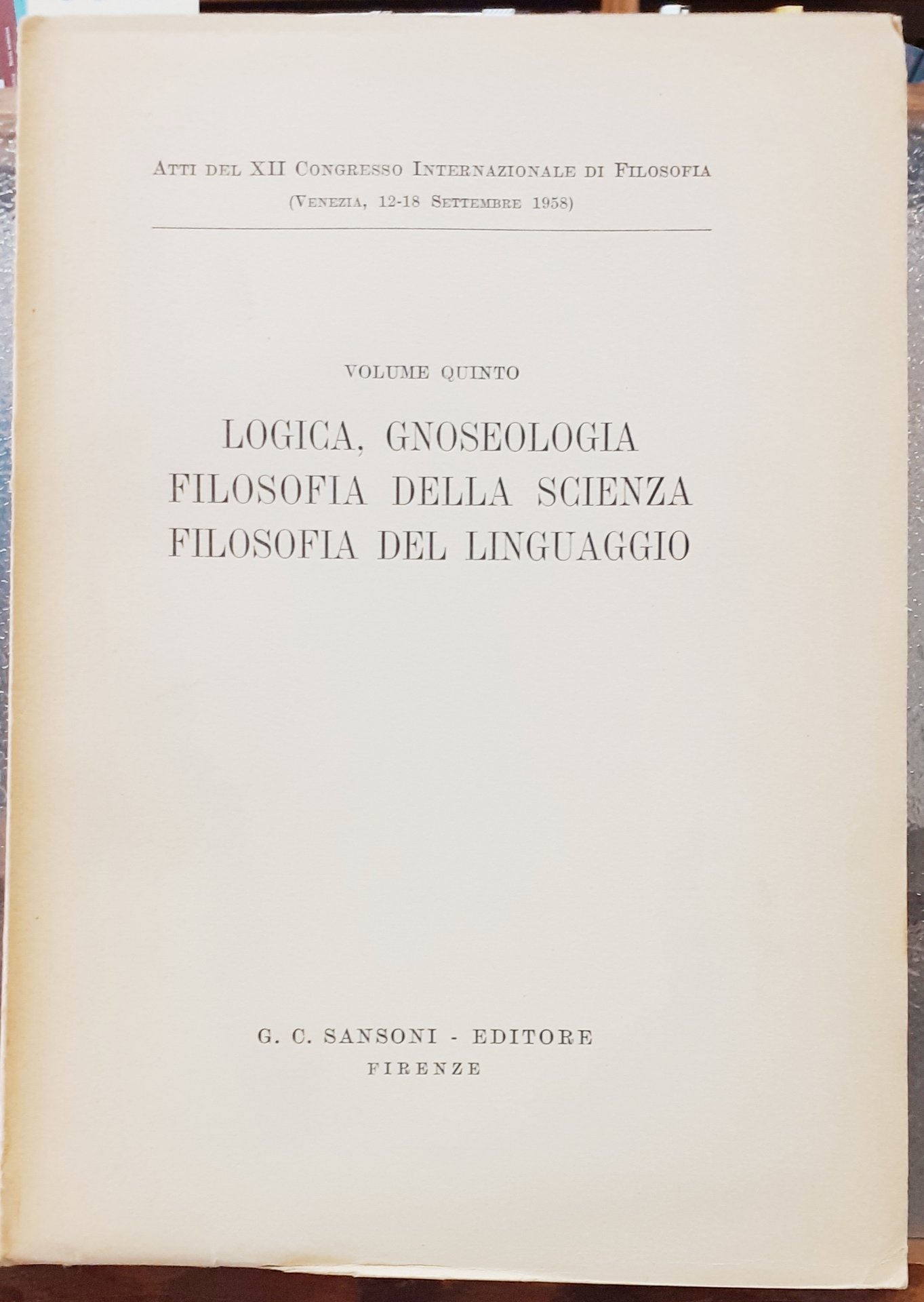 LOGICA, GNOSEOLOGIA, FILOSOFIA DELLA SCIENZA, FILOSOFIA DEL LINGUAGGIO. ATTI DEL XII CONGRESSO INTERNAZIONALE DI FILOSOFIA. (Venezia, 12-18 Settembre 1958)., Volume Quinto.,