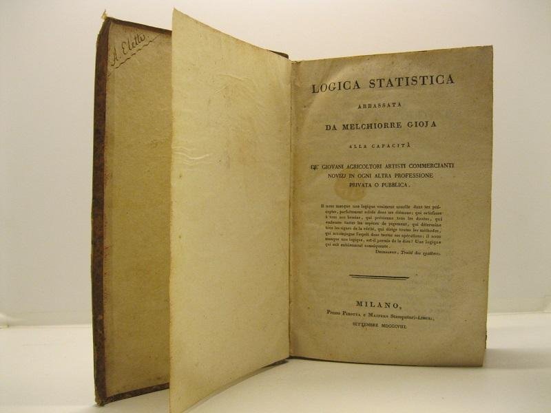 Logica statistica abbassata da Melchiorre Gioja alla capacita' de' giovani agricoltori, artisti, commercianti novizi in ogni altra professione privata o pubblica