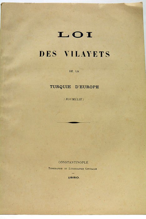 LOI DES VILAYETS de la Turquie d'Europe (Roumélie).