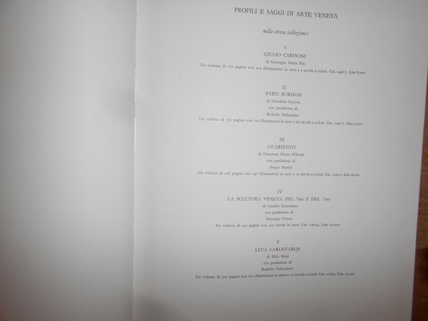 LONGHI. Venezia, Alfieri, 1968. In-4°, tela verde edit con titoli bianchi e sovracopertina ill. a col. 442, (1) pp. con 493 figure in bianco e nero nel testo e XXIV tavole a colori applicate. Esemplare come nuovo nel cofanetto edit. in tela verde. Neg. arte mob. 11