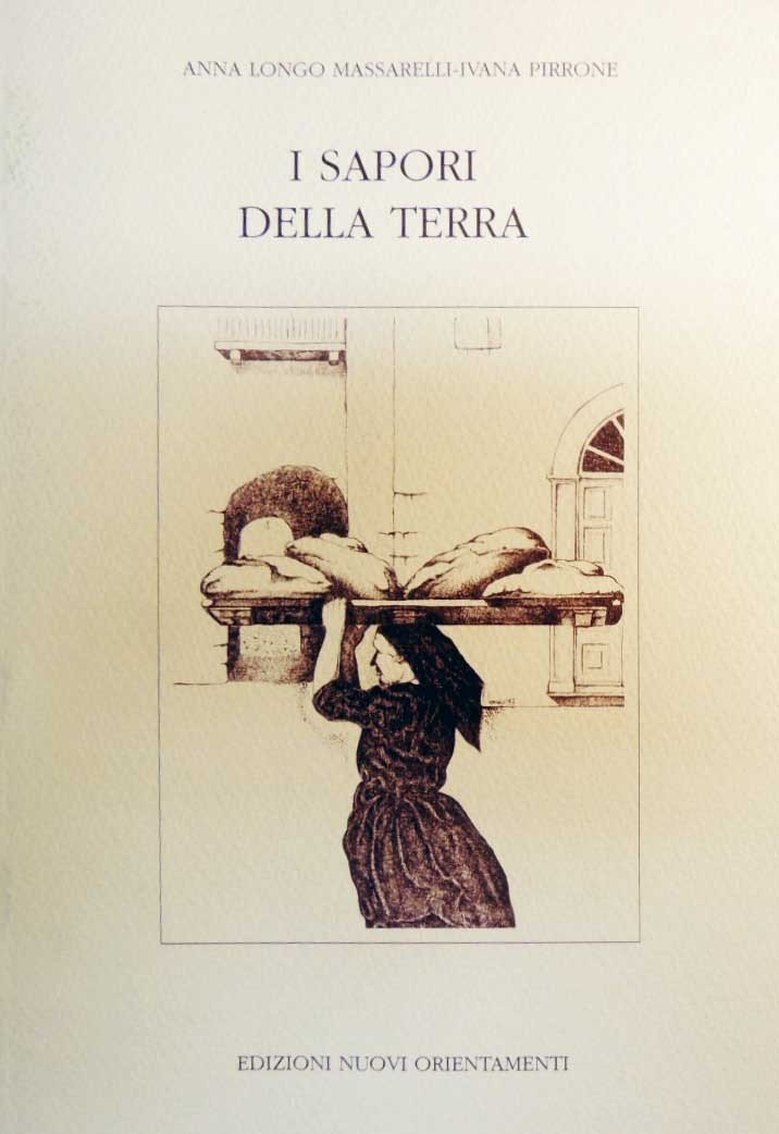 Anna Longo Massarelli, Ivana Pirrone, I sapori della terra, Edizioni Nuovi Orientamenti, Modugno (Bari) 1997, pp. 73, ill. b.n., cm 24, br. ed. Pubblicazione sugli alimenti tipici della tradizione pugliese (grano, vino, mandorle, olio e olive, verdure , legumi, ortaggi, pesci, latte e latticini, carne), con per ciascun alimento denominazione dialettali e riferimenti alle diverse varietà e alle modalità di consumo. Perfetto. Raro.