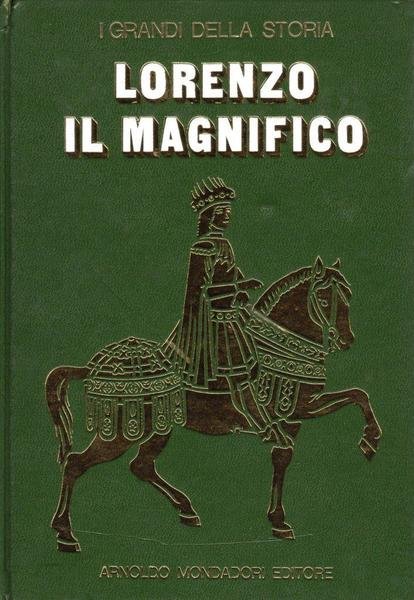 Lorenzo il Magnifico, prima edizione giugno 1970, pp. 125, formato 16 x 23,5.<BR>Copertina rigida di colore verde con illustrazioni impresse a freddo e titoli in bianco e oro al piatto anteriore e sul dorso.All'interno numerose tavole illustrate in b/n e a colori. <BR>Piccola imperfezione nella parte superiore del dorso. <BR>