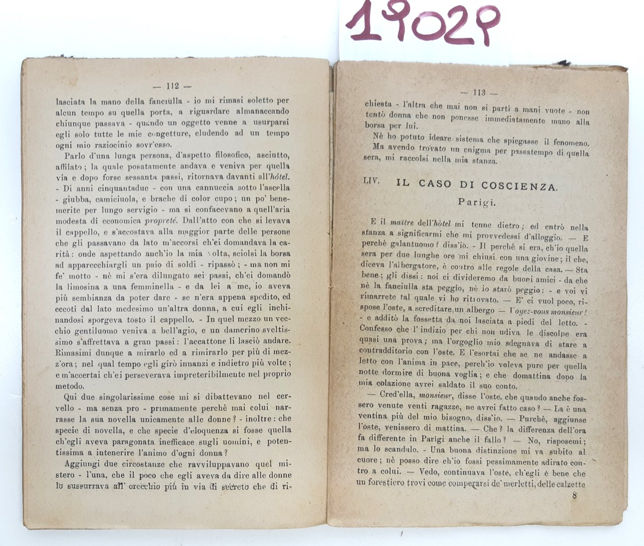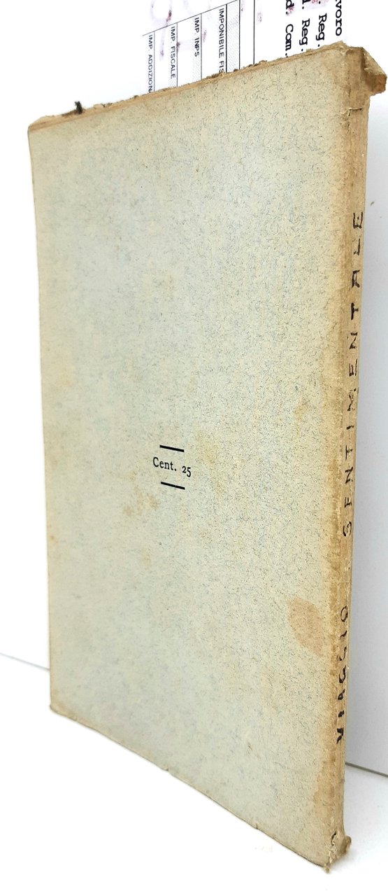 legatura morbida editoriale in condizioni accettabili con aloni e bruniture ai piatti e al dorso, un alone di umidità al margine interno del piatto anteriore, etichetta di possesso, dorso con pieghe abrasione ai margini e titolo scritto a penna nera, tagli bruniti e irregolari ed impolverati quelli superiori, interno in condizioni accettabili, ex libris alla seconda di copertina, legatura molto allentata, bruniture al margine esterno delle pagine e alcune fioriture che non impediscono la lettura, numero pagine 148 + indice dimensioni cm 16,4 * 10,7