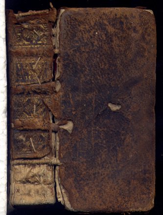 Lyon: en Leon de Francia, a costa de Anisson y Posüel, 1698. 32vo. (11 x 5 cms.); 11 hojas, en el reverso de la última un bello grabado xilográfico, 430 pp. Ejemplar con pérdida en el márgen exterior blanco de 10 páginas, y con pérdida puntual de alguna letra . Así como carente de la página 417/418, posiblemente por expurgo inqusitorial. Encuadernación de época, en piel, fatigada, con pérdidas en lomera y ambos planos.