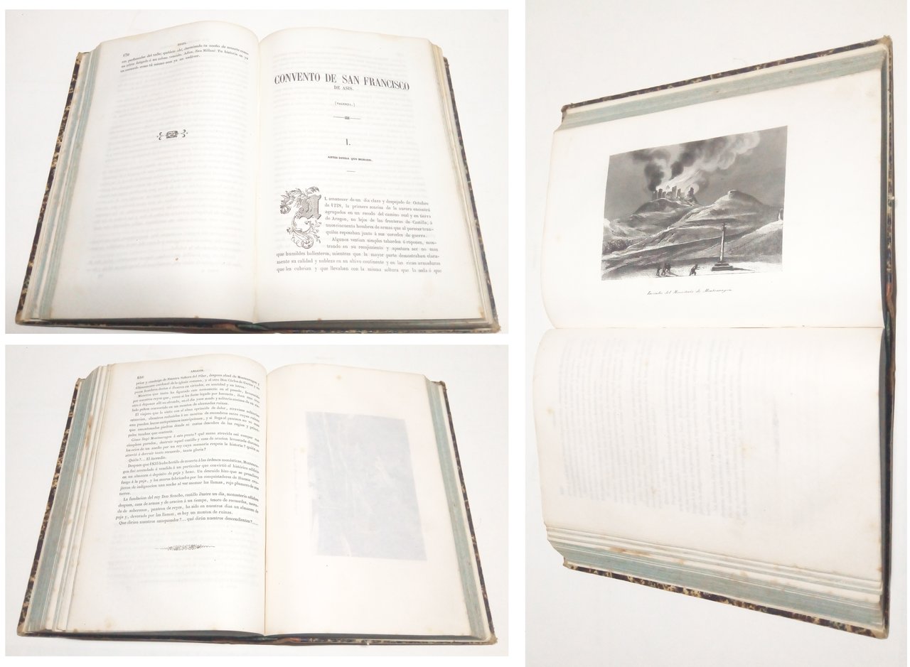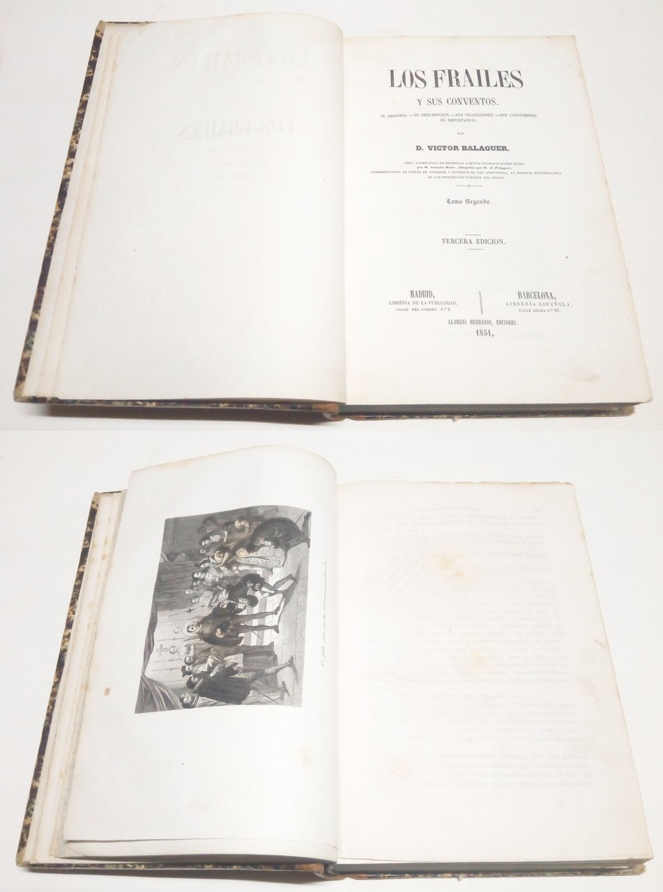 Madrid - Barcelona, LLorens Hermanos, Editores, 1851. 4to.; 664 pp., 4 hojas y 20 láminas grabadas por Antonio Roca sobre dibujos de José Puiggarí. Encuadernación de época en media piel, con lomera ornada.