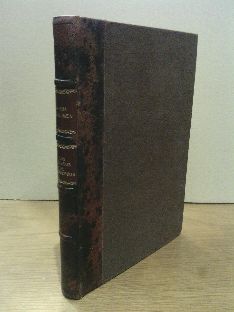 Madrid: C. Bermejo Imp., 1945.- 125 p.: Con láminas fotográficas en negro [algunas plegadas], estados, y al final 20 planos plegados de la costa y diversos puertos del Marruecos Español; 4º (25 cm.); Media Piel nueva, lomera con dos tejuelos y cuatro nervios, conservando las cubiertas originales.* En excelente estado de conservación. MARRUECOS Y SAHARA ESPAÑOL