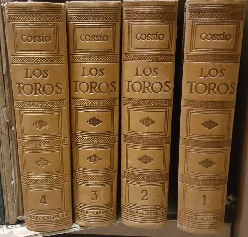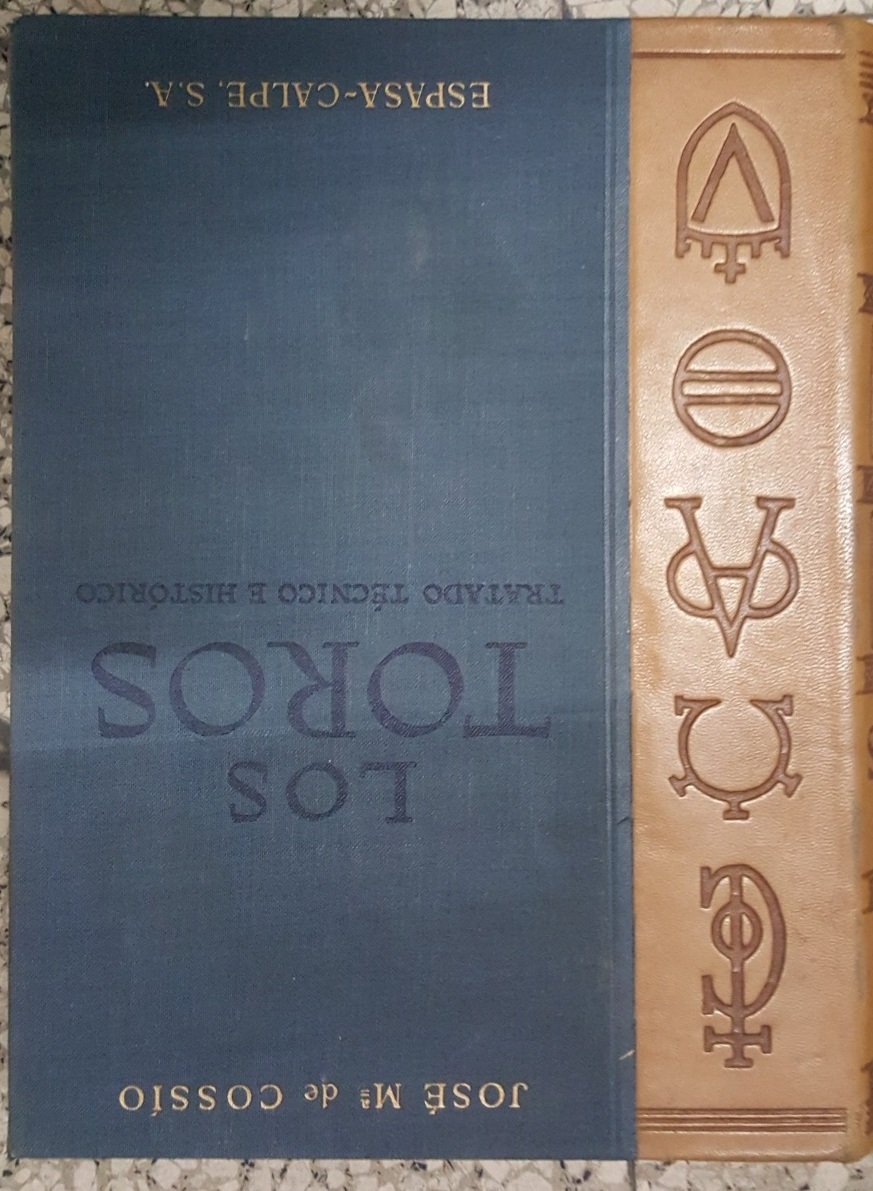 >4 volumi, in-8, I vol.: pp. 1024, II vol.: pp. 1040, III vol.: pp. 1030, IV vol.: pp. 1033, con numerose illustrazioni in b/n n.t. e tavole a colori f.t., bella legatura in mezza pelle con incisioni decorative al dorso e ai piatti. Opera monumentale che costituisce il più vasto e documentato saggio di tauromachia. Tutto il pubblicato vivente l'ideatore, fu continuata da altri autori in epoca più recente.