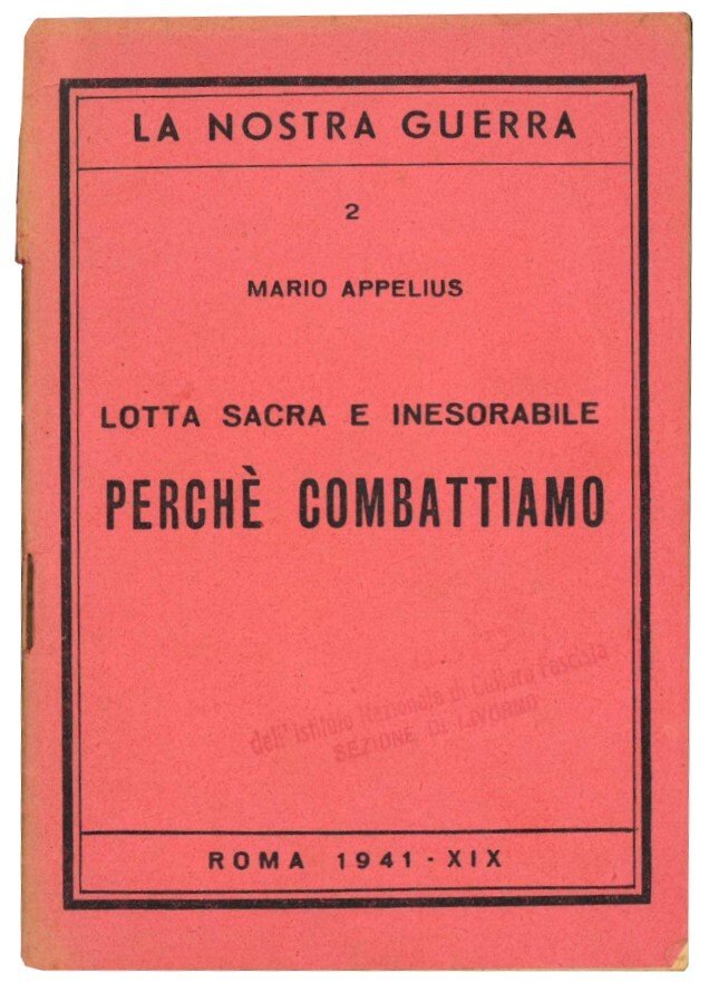Mm. 153x106. Pp. 15, [1]. Brossura editoriale con titolo alla cop. ant. Presente timbro 'dell'Istituto Nazionale di Cultura Fascista sezione di Livorno' alla cop. ant. Brossura parzialmente staccata. Prima edizione appartenente alla collezione "La nostra guerra", nr. 2.