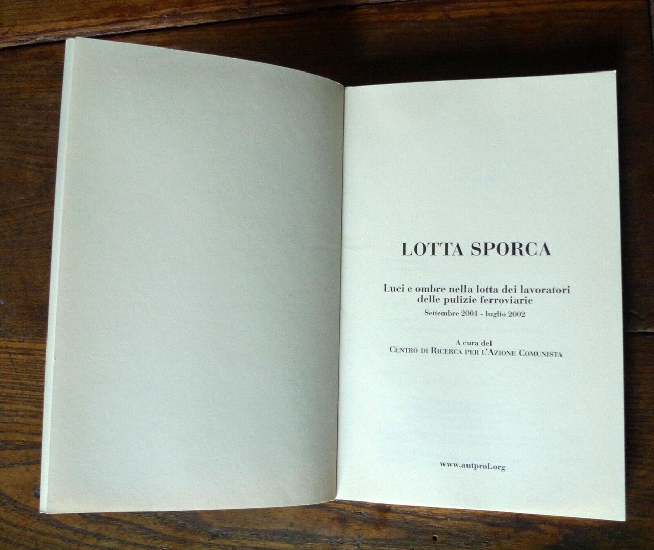 A cura del Centro di Ricerca per l'Azione Comunista,LOTTA SPORCA.LUCI E OMBRE DELLA LOTTA DEI LAVORATORIDELLE PULIZIE FERROVIARIE.Settembre 2001 - Luglio 2002.Edito per conto della CRAC dallaCooperativa Colibrì, Paderno Dugnano (MI) 2002,brossura, 21x14 cm., pp.116,illustrazioni in bianco e nero,ISBN: 88-86345-48-8,peso: g.300cod.9206CONDIZIONI DEL LIBRO: ottime