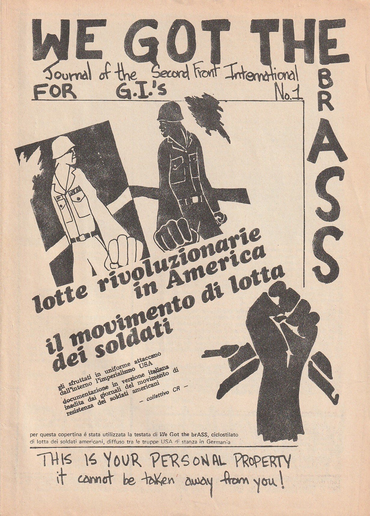 Quaderno monografico (dir. responsabile Sandro Sarti) a cura del Collettivo CR, che si occupa dello scambio di informazioni politiche con l'opposizione popolare in America. Contiene, tra gli altri, un articolo sul "processo all'esercito" da parte di una giuria popolare in un'università di Washington, e articoli sulle carceri militari e testimonianze dirette dal Vietnam. Giornale a fogli sciolti, in perfetto stato.