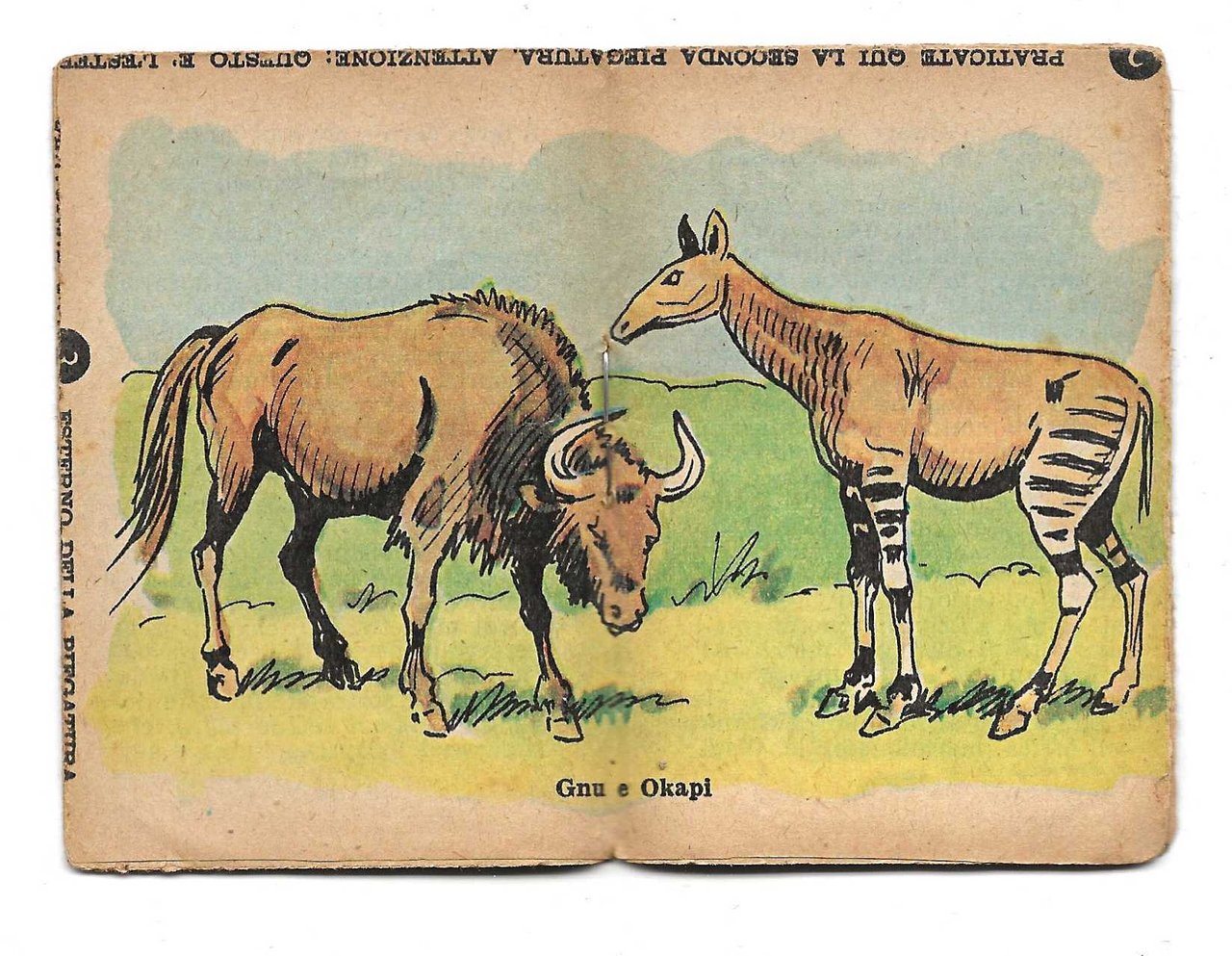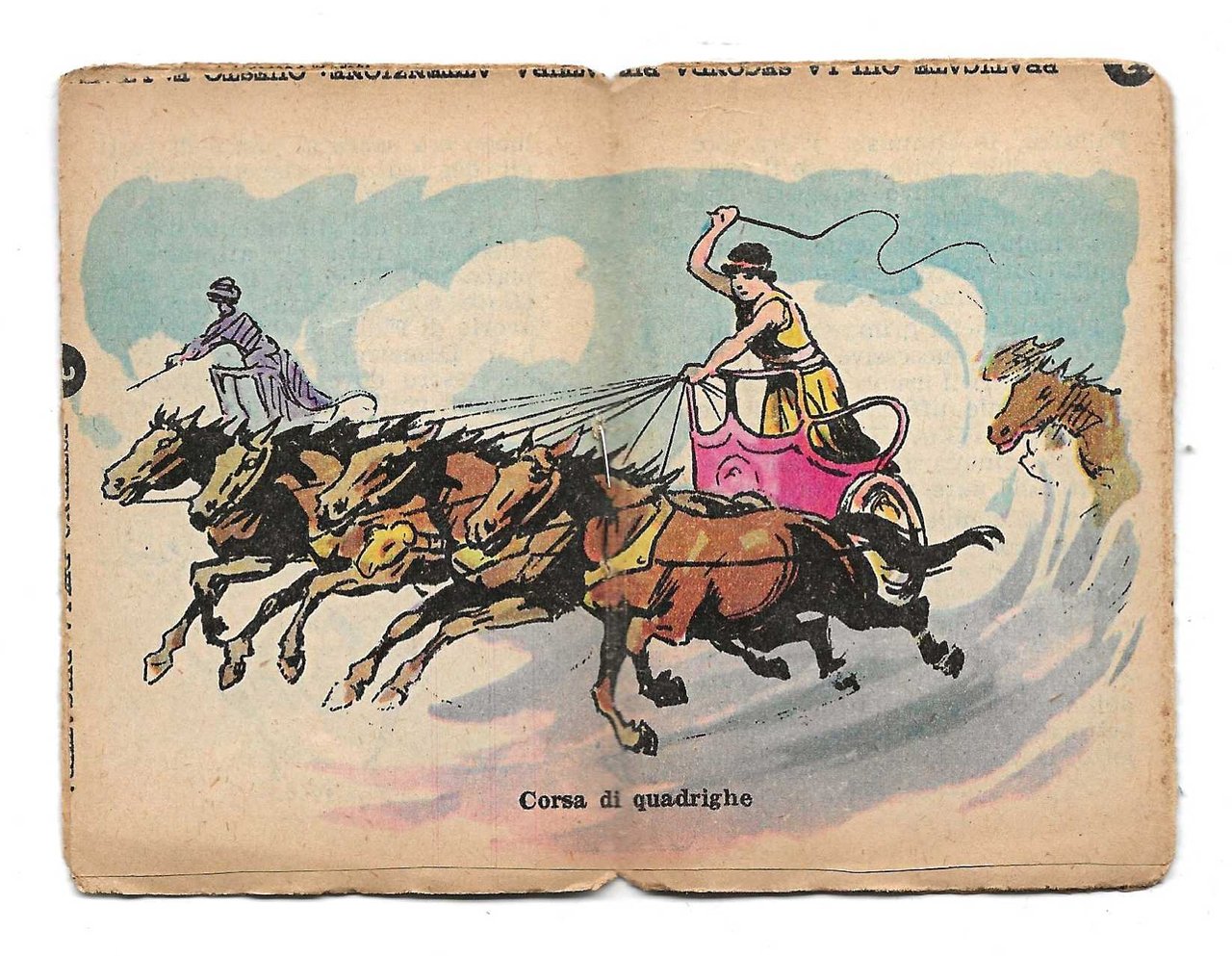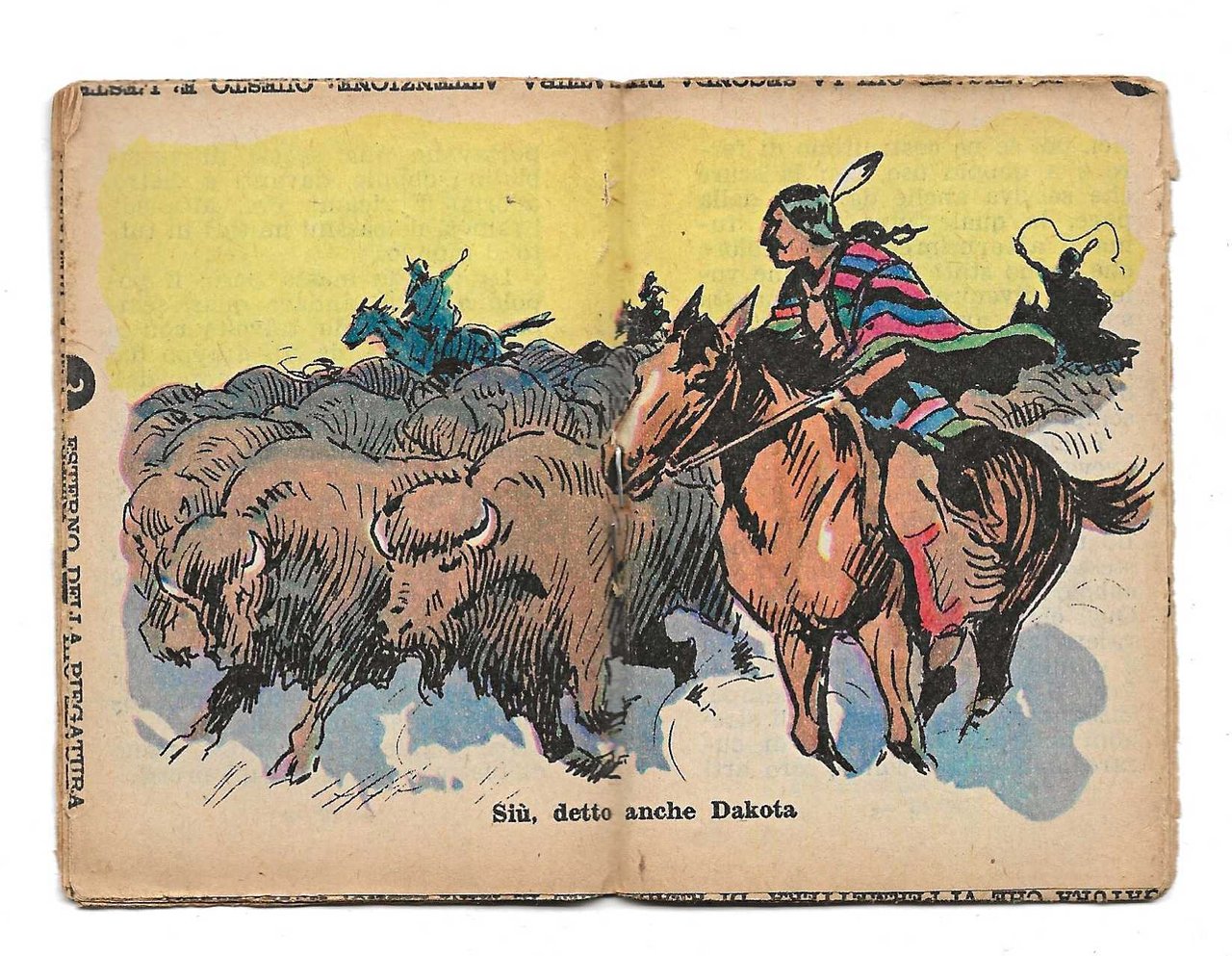 Ogni libro contiene un racconto, s.d. anni '50 circa. Serie di 10 libretti sciolti dal N.1 al N.16. N.1 - Mino Milani: Il cavallo nero; N.2 - Domenico Natoli: I Soldati romani; N.6 - Domenico Natoli: I Pellirosse; N.9 - Pietro Radius: La prima Olimpiade; N.10 - Nino Oppio: La vita di John Charles; N.11 - Piero D'Ami: Storia di un elefante; N.12 - Domenico Natoli: Animali strani; N.14 - Vincenzo Gibelli: Il dramma dei salmoni; N.15 - Maria Pia Sorrentino: La pallina d'oro; N.16 - Prezzemolina dalle trecce d'oro. Illustrazioni in b/n e a colori a quasi tutte le pagine, anche a piena pagina, e fotografiche in qualche libretto. Libretti editoriali con minime tracce del tempo e lievissime barbe al margine esterno di qualche fascicolo. Internamente tutti freschi e puliti. 6,5x9,5; pag.5 cadauno. Rari e in Buonissimo stato. , Molto buono (Very Good)