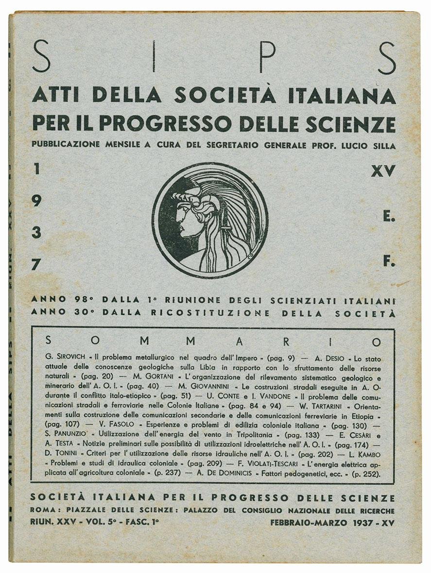 - Volume 5 Fascicolo 1. Febbraio-Marzo 1937. Pp. 260, [14] c. di tav. fuori testo, anche ripiegate. Illustrazioni in bianco e nero nel testo. Carta leggermente ed uniformemente brunita, lievi fioriture. Minime mancanze ad alcune delle c. di tav. Brossura un po' sporca.