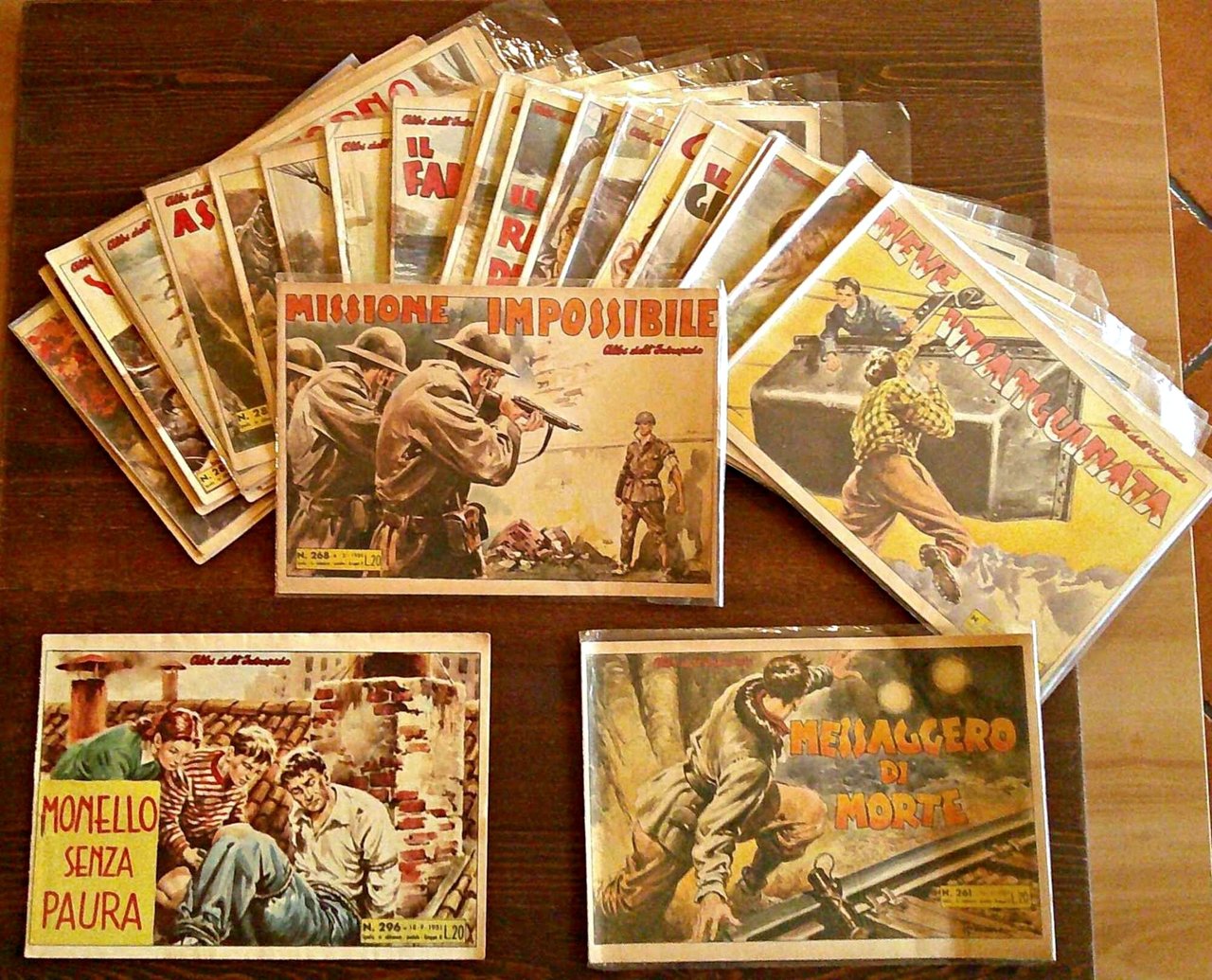 Collezione quasi Completa con 132 su 142 totali Albi dell'Intrepido dal N.155 al N.296 (mancano i N. 184, 186, 222, 224, 237, 239, 259, 260, 272, 291). Casa Editrice Universo - Milano, 1949/51. Brossure editoriali con qualche dorsetto da rinforzare e qualche lieve traccia di ruggine alle spillette. 25x17. Buonissimo stato. , Molto buono (Very Good)