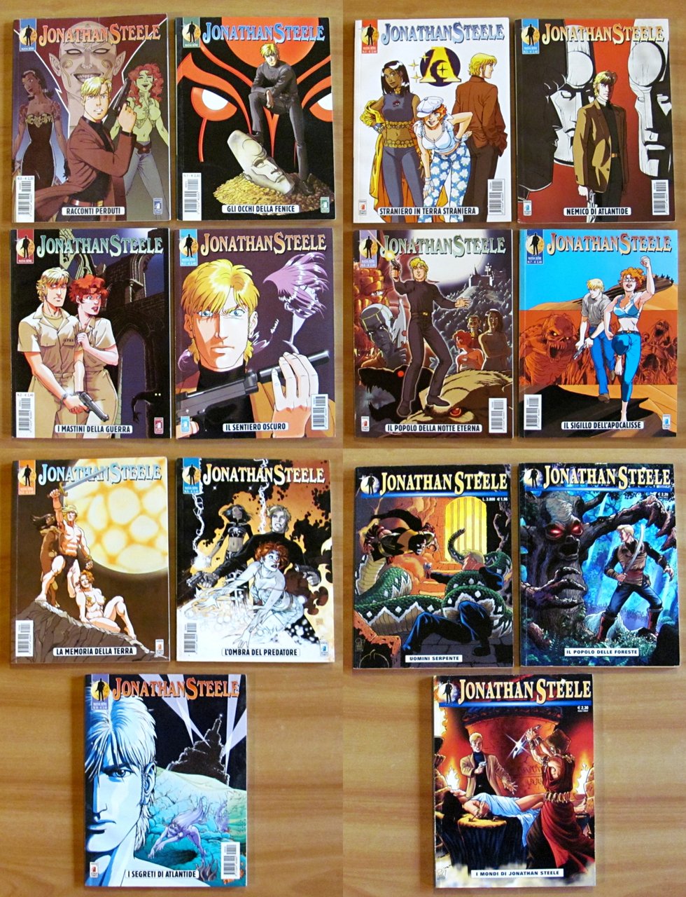 Lotto di 14 Albi Jonathan Steele: Nuova Serie - dal N.0 al N.10 + I Serie - N.17, 46 e 64. Nuova Serie - Ed. Star Comics, 2004. I Serie - Editore Sergio Bonelli, 2000. Brossure editoriali in Ottimo stato. Il N.0 ha una traccia di vecchia piega al centro della sola copertina. 16x21; pp.98 cad. Tutti in Ottimo stato. , Ottimo (Fine)