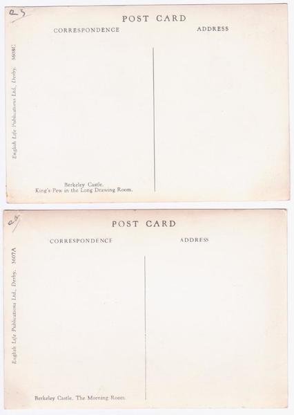 Lotto di 2 cartoline - Post Cards - Berkeley Castle. King's Pew in the Long Drawing Room + The Morning Room