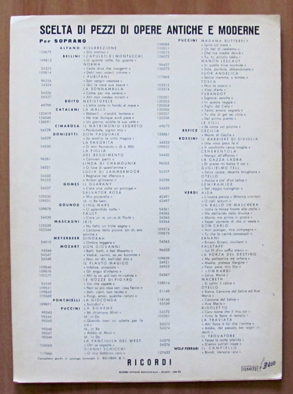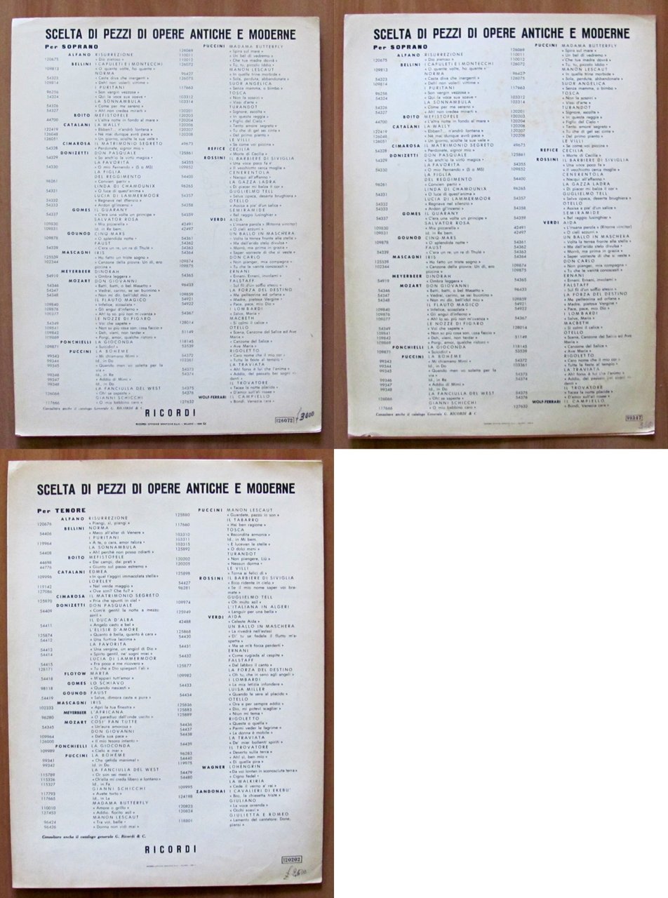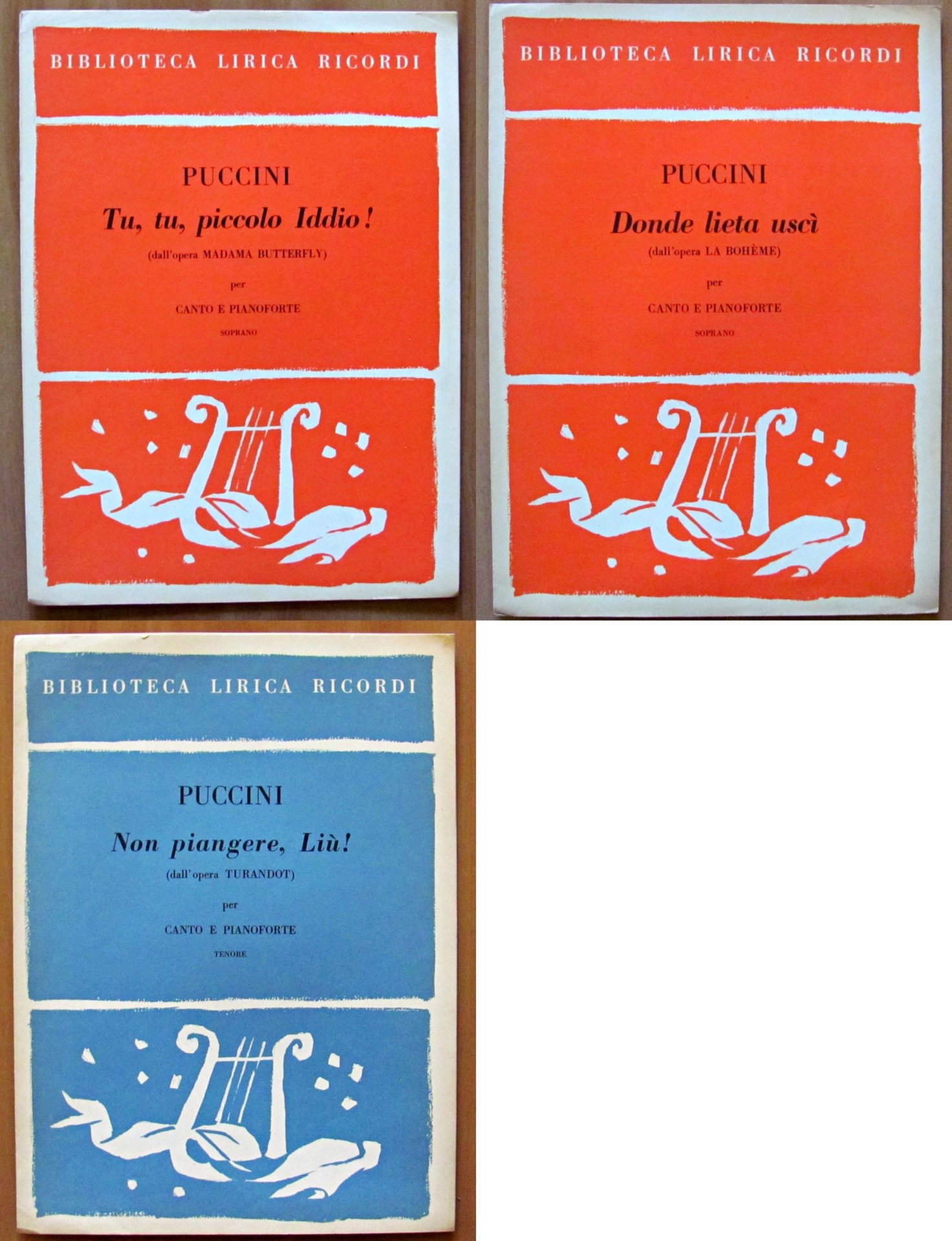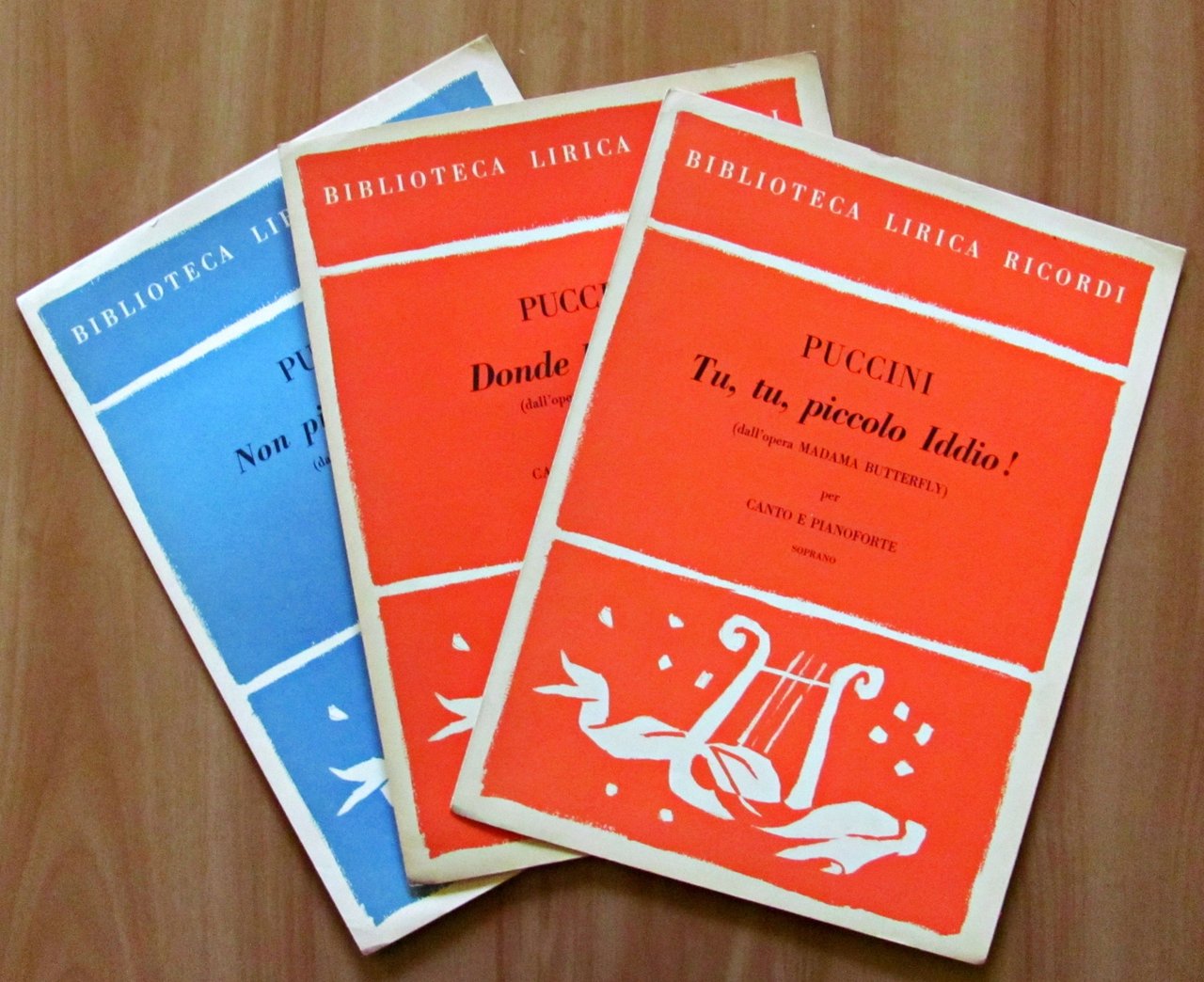 Non piangere, Liù (da La Turandot), Donde lieta uscì (da La Bohème), Tu, tu, piccolo Iddio (da Madama Butterfly). Ed. Ricordi - Milano, 1956-1958-1959. Brossure editoriali. 24x32. OTTIMO STATO , Ottimo (Fine)