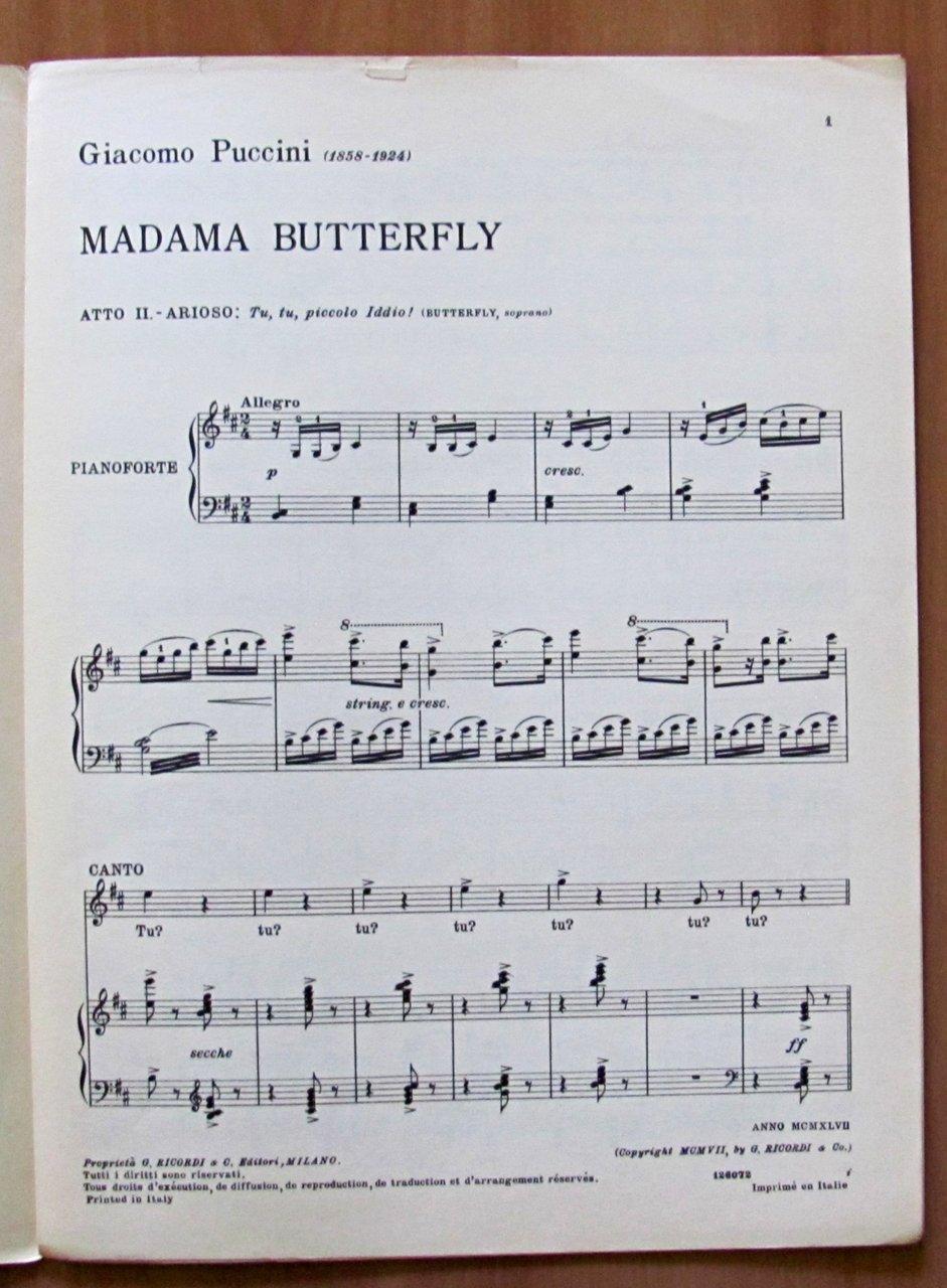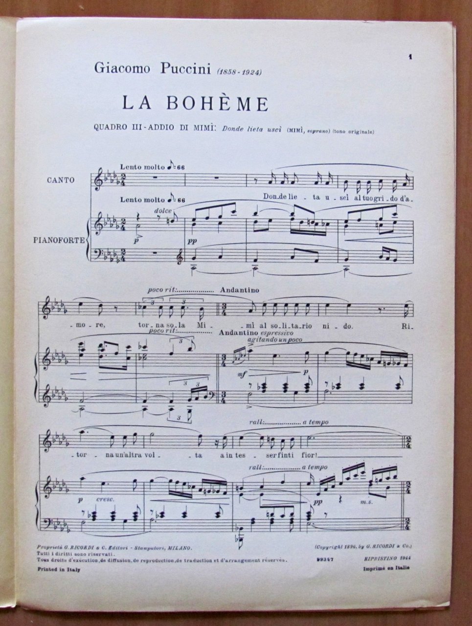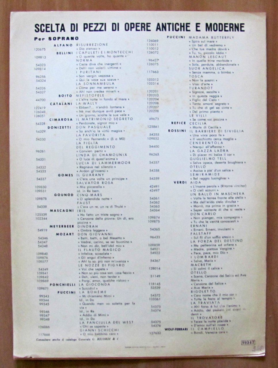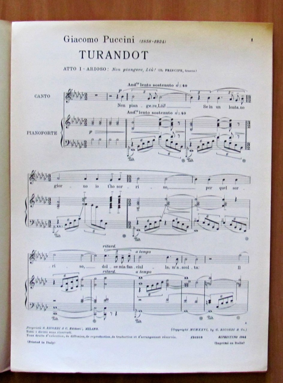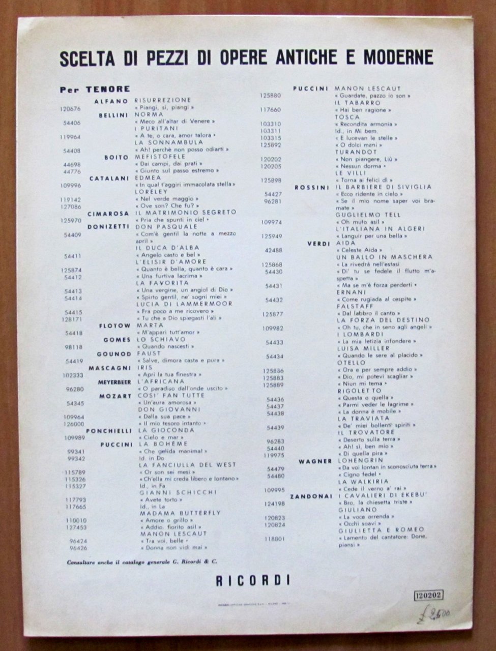 Non piangere, Liù (da La Turandot), Donde lieta uscì (da La Bohème), Tu, tu, piccolo Iddio (da Madama Butterfly). Ed. Ricordi - Milano, 1956-1958-1959. Brossure editoriali. 24x32. OTTIMO STATO , Ottimo (Fine)
