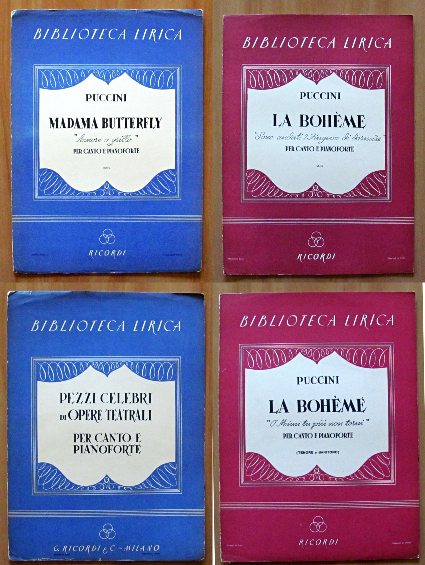 LOTTO DI 4 SPARTITI DI PUCCINI PER CANTO E PIANOFORTE - La Bohème, Pezzi Celebri di Opere Teatrali, Madama Butterfly - Collana BIBLIOTRECA LIRICA