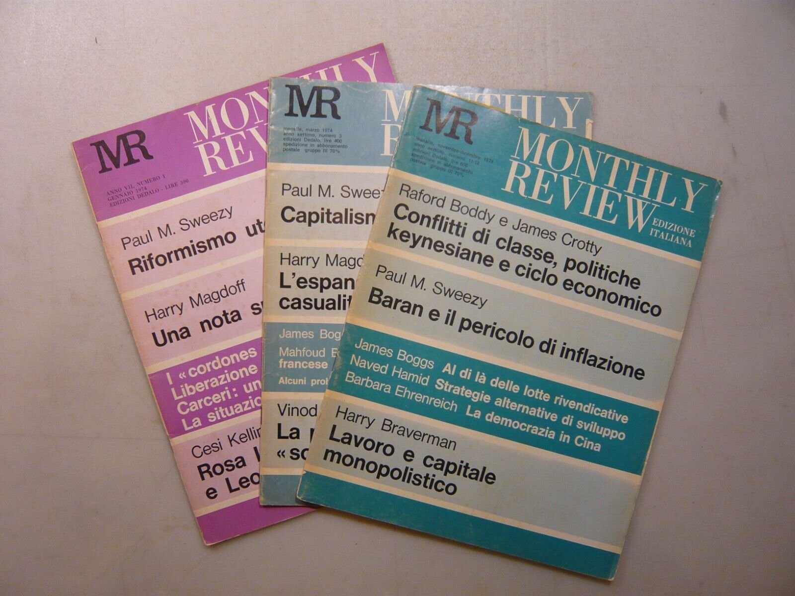 Lotto MONTHLY REVIEW,Dedalo, 1974, 3 numeri[Leo Guberman,Sweezy