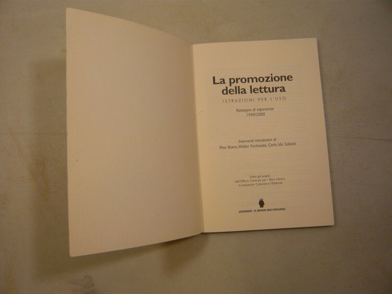 Pino Boero, Walter Fochesato, Carla Ida SalviatiLA PROMOZIONE DELLA LETTURAISTRUZIONI PER L’USORASSEGNA DI ESPERIENZE 1990-2000Andersen, Rapallo, 2000Ministero per i Beni e le Attività CulturaliMinistero della Pubblica IstruzioneBrossura, 21x15cm, pp.80