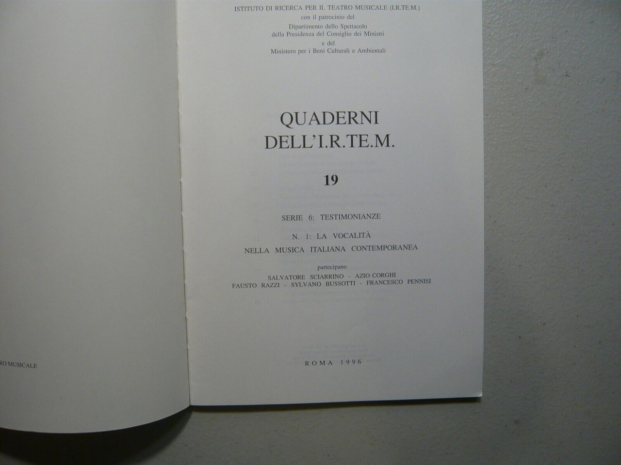 n.19LA VOCALITA’ NELLA MUSICA ITALIANA CONTEMPORANEAI.R.TE.M., Roma, 1996Brossura, 24x17cm, pp. 82Peso: g. 184