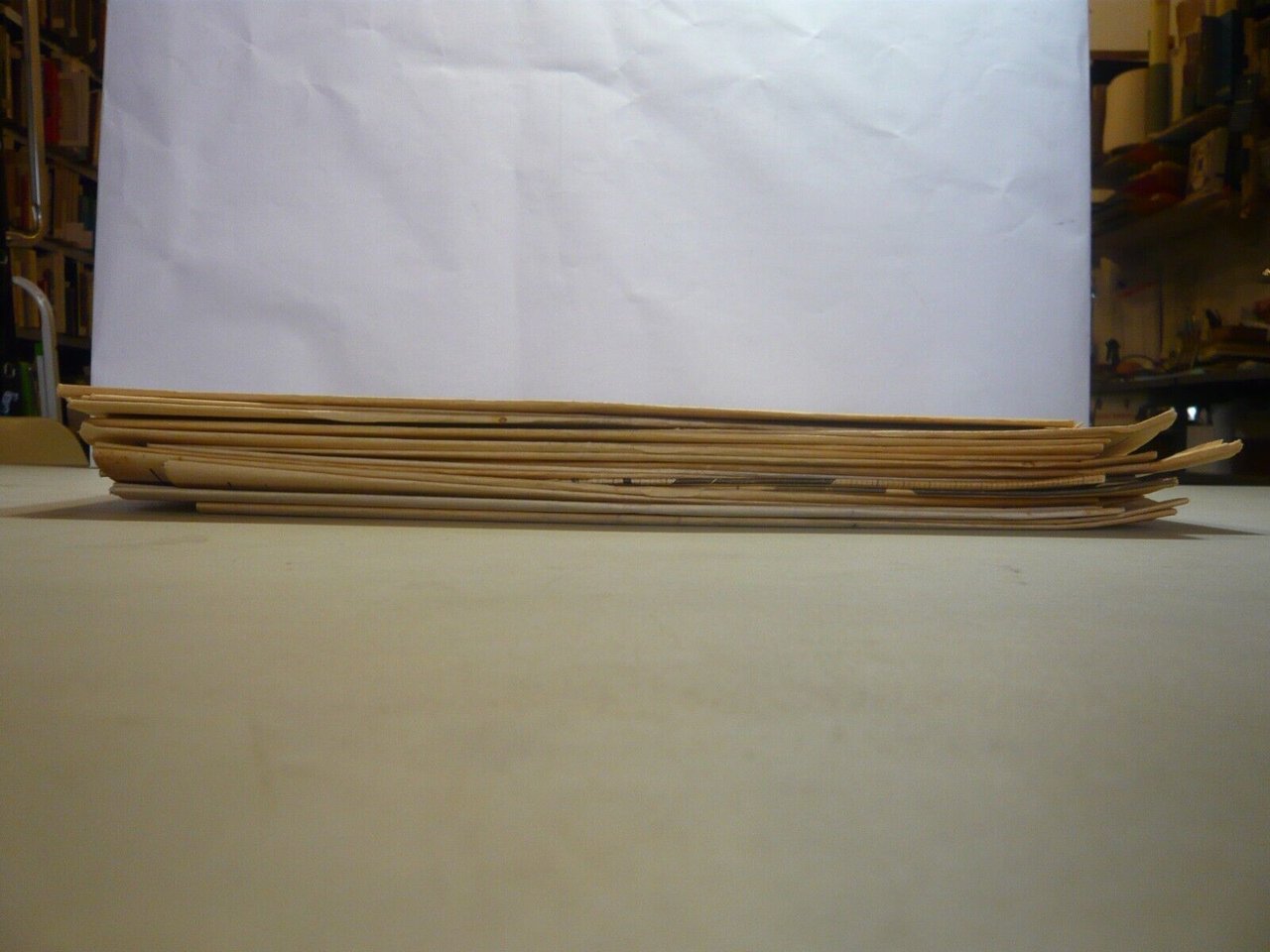 Pagine ingiallite. Segni e scritte a matita su alcune copertine.