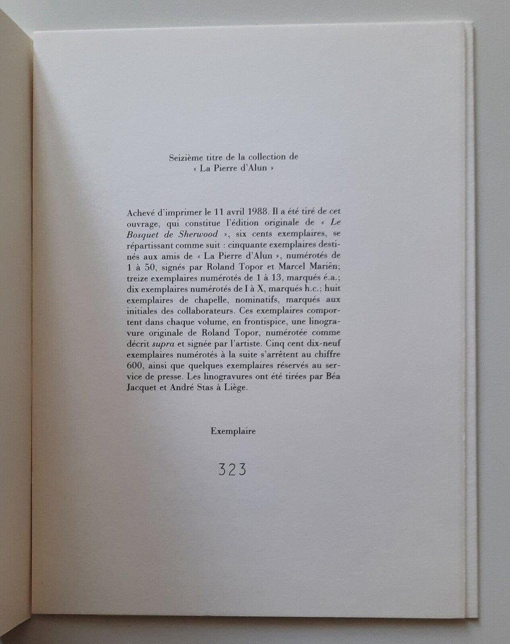 Edizione a tiratura limitata e numerata in 600 copie, questa la n. 323.