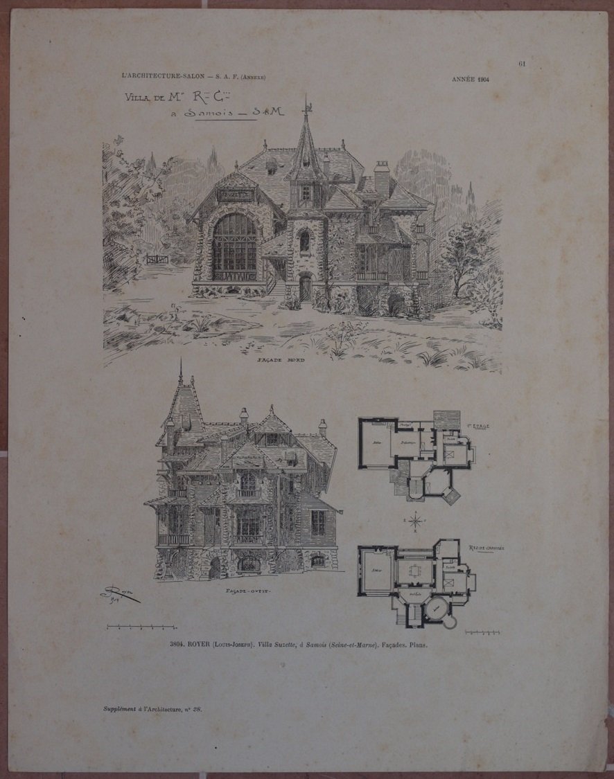LOYER LOUIS JOSEPH VILLA SUZETTE A SAMOIS (SEINE ET MARNE) FACADES. PLANS.