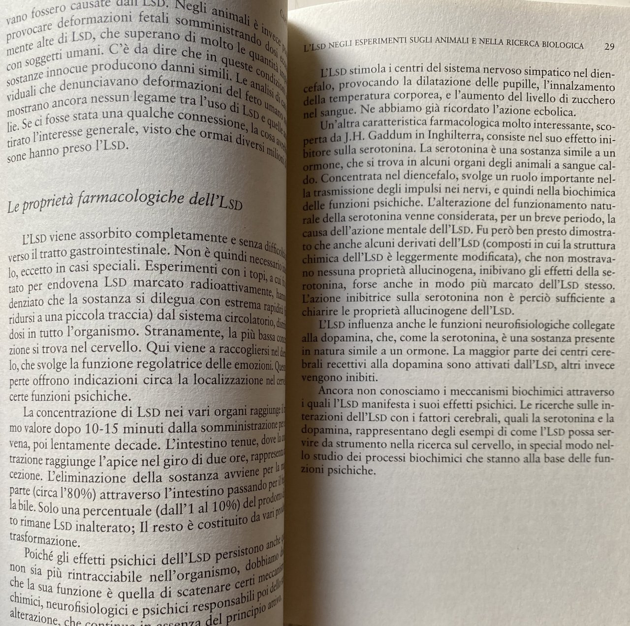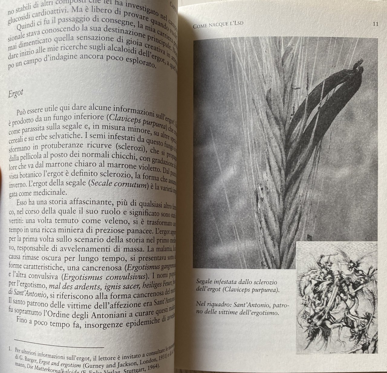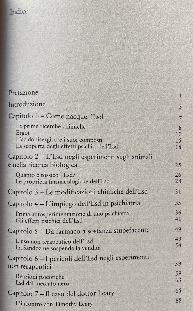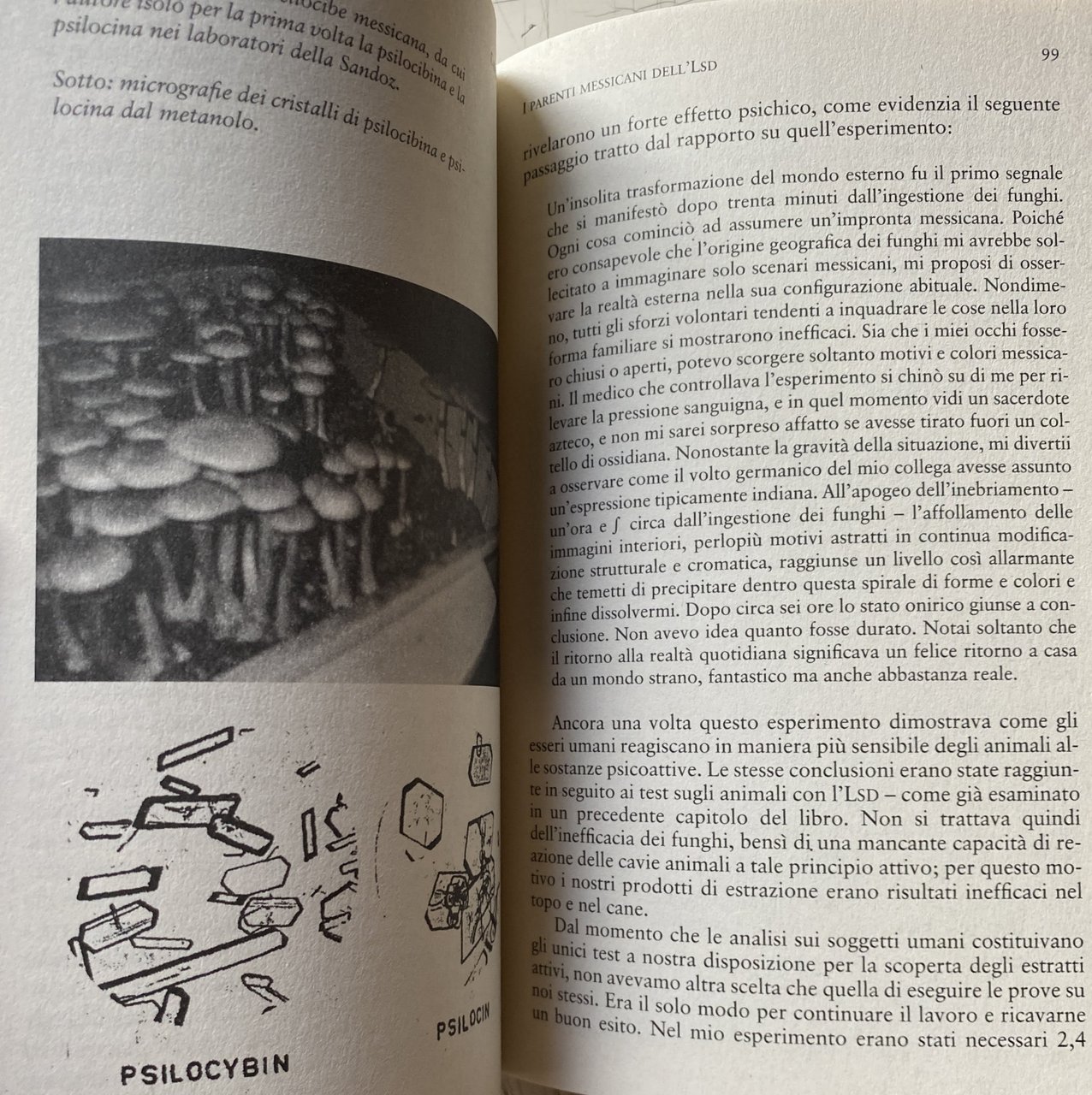 Soggetti: Droghe sintetiche, Sostanze stupefacenti Tossicodipendenza LSD, Chimica, Droga, Effetti psichici, Viaggio, Funghi allucinogeni, Allucinazioni, Acido lisergico, Acidi, Biologia Esperimenti animali Composti chimici Legami Psichiatria Psicologia Terapia Utilizzo Farmaci Uso terapeutico Sandoz Vendita Reazioni psicotiche Mercato nero Spaccio Spacciatori Tossicodipendenti Dottor Timothy Leary Danza Anime Vento Anima Aironi Volare Teonanacatl Fungo sacro Messico Psilocibina Pianta sacra Ska Maria Pastora Salvia riti rituali Cerimonie Irradiazione Ernst Junger Aldous Huxley Misteri Mito Esperienze spirituali Formule chimiche Saggistica Attualità Tempo libero Divertimento Giovani Personaggi famosi Misticismo Scienza Consumo Sostanze psicotrope Nativi americani Successi editoriali Bestsellers Saggistica Libri Vintage fuori catalogo Collezionismo Bibliografia Riferimento Abuso Stati di coscienza Psicoattive Fin di vita Mon enfant terrible Walter Vogt Alcaloidi Aztechi Basilea Botanica Bottmingen Cerimonia Magici Clinica Colori Curandera curandero Scoperta Delysid Dietilamide Esperienza Dosaggio Dose Farmaco Ernst Jünger Gelpke Gordon Wasson Semi Herlinda Hippie Hoja Immagini Indiani Indotti Acido lisergico Alcaloide Ergobasina Ergotossina Intossicazione Ololiuqui Laboratorio Maria Sabina Mazateco Mazatec Mescalina Piante farmacologiche Stoll Principio attivo Psilocybe Mexicana Psichedelici Psicoterapeutico Rivea Sandoz Serotonina Sintesi Teonanacatl Tossicità Turbina Hygrophila corymbosa Visionaria Visione Wilflingen Messicana Messico Misteri Gelpke Gordon Wasson Delysid Dietilammide Dimensione Ipomea violacea Composti Segale cornuta Università Harvard Ergotamina Ergotismo Percezione Sant'Antonio Ignis sacer Antoniani Cristalli Metanolo Rerum Medicarum Francisco Hernandez Hispanie Tesaurus Turbina corimbosa Serpente Simbolismo Coaxihuitl Enteogeni Biografie Memorie Karl Kerenyi Religioni Eleusi Grecia Synthetic drugs Narcotic substances Drug addiction Chemistry Psychic effects Travel Hallucinogenic mushrooms Hallucinations Lysergic acid Acids Biology Animal experiments Chemical compounds Bonds Psychiatry Psychology Therapy Use Drugs Therapeutic use Sale Psychotic reactions Black market Dealing Addicts Dance Anime Wind Soul Herons Flying Sacred mushrooms Mexico Psilocybin Sacred plant Sage Rites Rituals Ceremonies Irradiation Mysteries Myth Spiritual experiences Chemical formulas Non-fiction Current affairs Free time Entertainment Young people Famous people Mysticism Science Consumption Psychotropic substances Native Americans Publishing successes Non-fiction Out of print books Collectibles illustrated Bibliography Reference Abuse States of consciousness Psychoactive End of life Alkaloids Aztecs Basel Botany Ceremony Magic Clinic Colors Curandera Discovery Diethylamide Experience Dosage Seeds Images Indians Induced Lysergic Alkaloid Ergobasine Ergotoxin Intoxication Laboratory Mescaline Pharmacological plants Active ingredient Psychedelics Psychotherapeutic Serotonin Synthesis Toxicity Visionary Turbine Mexican Vision Mexico Mysteries Diethylamide Size Compounds Ergot University Ergotamine Perception Saint Anthony Crystals Methanol Corymbose Turbine Snake Symbolism Entheogens Biographies Memories Religions Eleusis Greece Dionysian Spirit Nietzsche