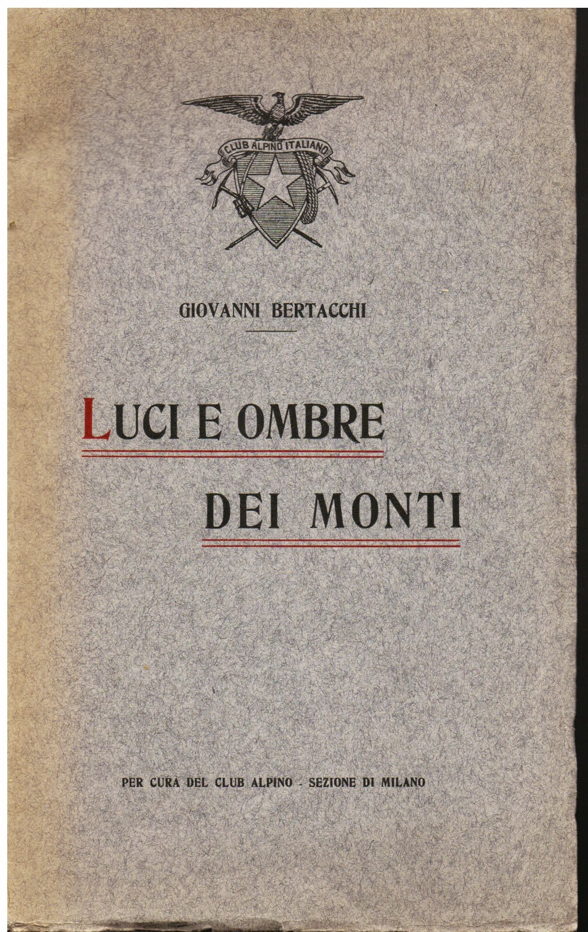 Luci e ombre dei monti. Conferenza tenuta la sera del 12 maggio 1912 nel Teatro dell' Accademia dei Filodrammatici in Milano a favore del soggiorno gratuito in montagna ai militari feriti reduci dalla Campagna d' Africa