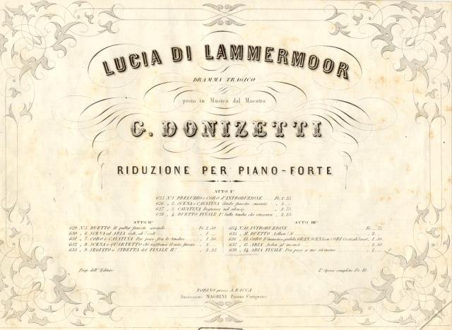 LUCIA DI LAMMERMOOR (1835). Dramma tragico. Aria finale "Fra poco a me ricovero". Riduzione per Pianoforte solo. 1850 circa (Pl.n°638).