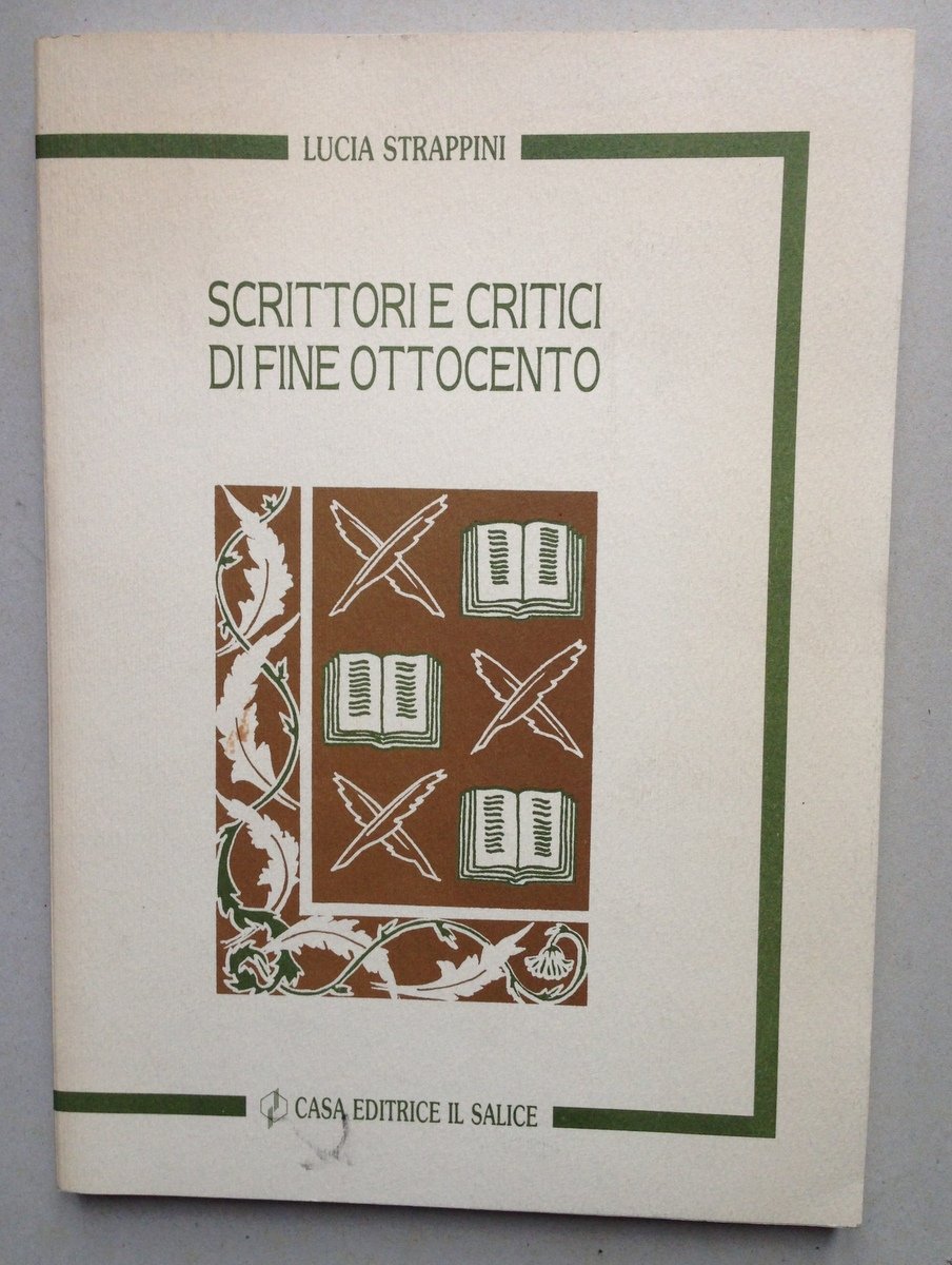 Lucia Strappini, Scrittori e critici di fine Ottocento Casa Editrice Il Salice 1992, cm 26x18.5, pp 207, cartoncino ed. ill. Condizioni di conservazione Esemplare in buono stato con leggere tracce d'uso. SETT113.L10830 MT
