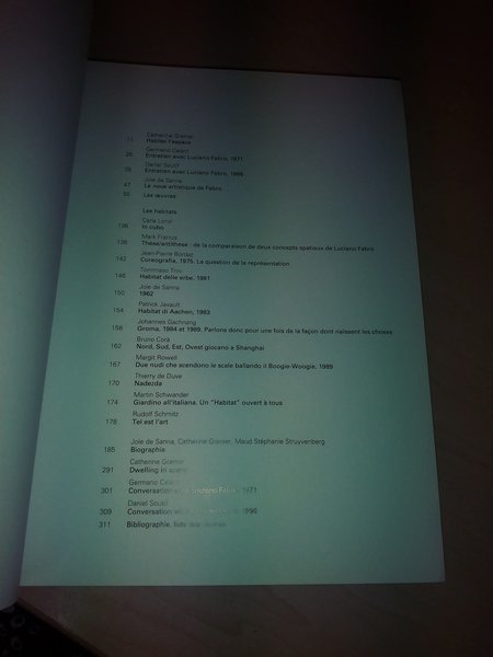 catalogo della mostra Luciano Fabro (Habitat) al Musée National d'Art Moderne-Centre de Création Industrielle, Centre Pompidou, Parigi, 9 ott.1996-6 gen.1997. 344 pp., con 162 ill.b.n. e 55 tavv.col., bros., 16,5x21 cm.