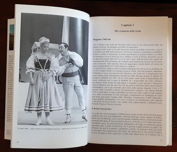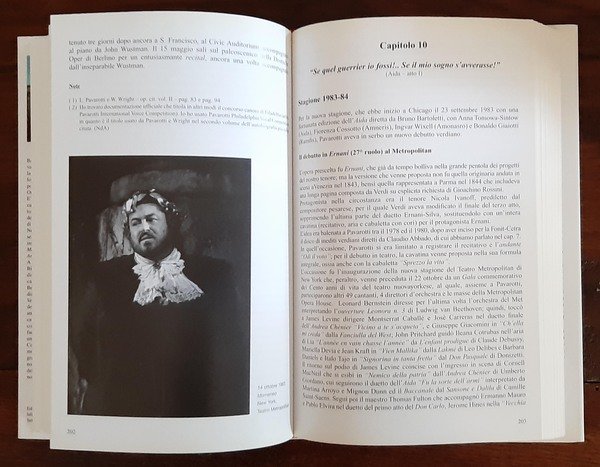 Un volume, 234x140 mm, leg. editoriale in simil pelle, sopracopertina patinata con illustrazioni a colori e titoli in nero al piatto ant.; pp. 416. Numerose illustrazioni in b/n e a colori. Prima edizione, maggio 2009, di quest'opera biografica sull'artista Pavarotti. Rif.: IT\ICCU\MOD\1565125. OCLC, 641458728. Cond.: Esemplare in condizioni generali quasi ottime.