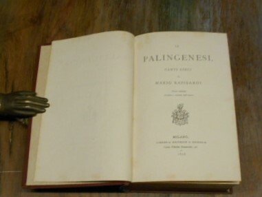 Due volumi riuniti in un tomo in 16° (cm 17,5 x 12,5), legatura coeva in piena tela amaranto, al dorso filetti a secco e titoli in oro. "Lucifero. Poema di Mario Rapisardi", seconda edizione rivista dall'autore ed accresciuta di un'epistola ad Andrea Maffei, pp. (6),419,(1). "La Palingenesi. Canti dieci di Mario Rapisardi", nuova edizione riveduta e corretta dall'autore, pp. VII,(1),341,(3). Circoscritta perdita di colore al piatto anteriore della legatura, peraltro volume in ottimo stato di conservazione.
