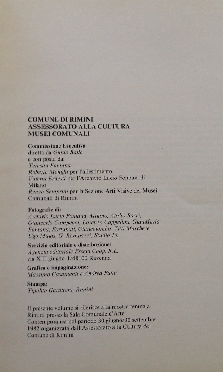Lucio Fontana Mostra Antologica Sala Comunale Comune di Rimini 1982