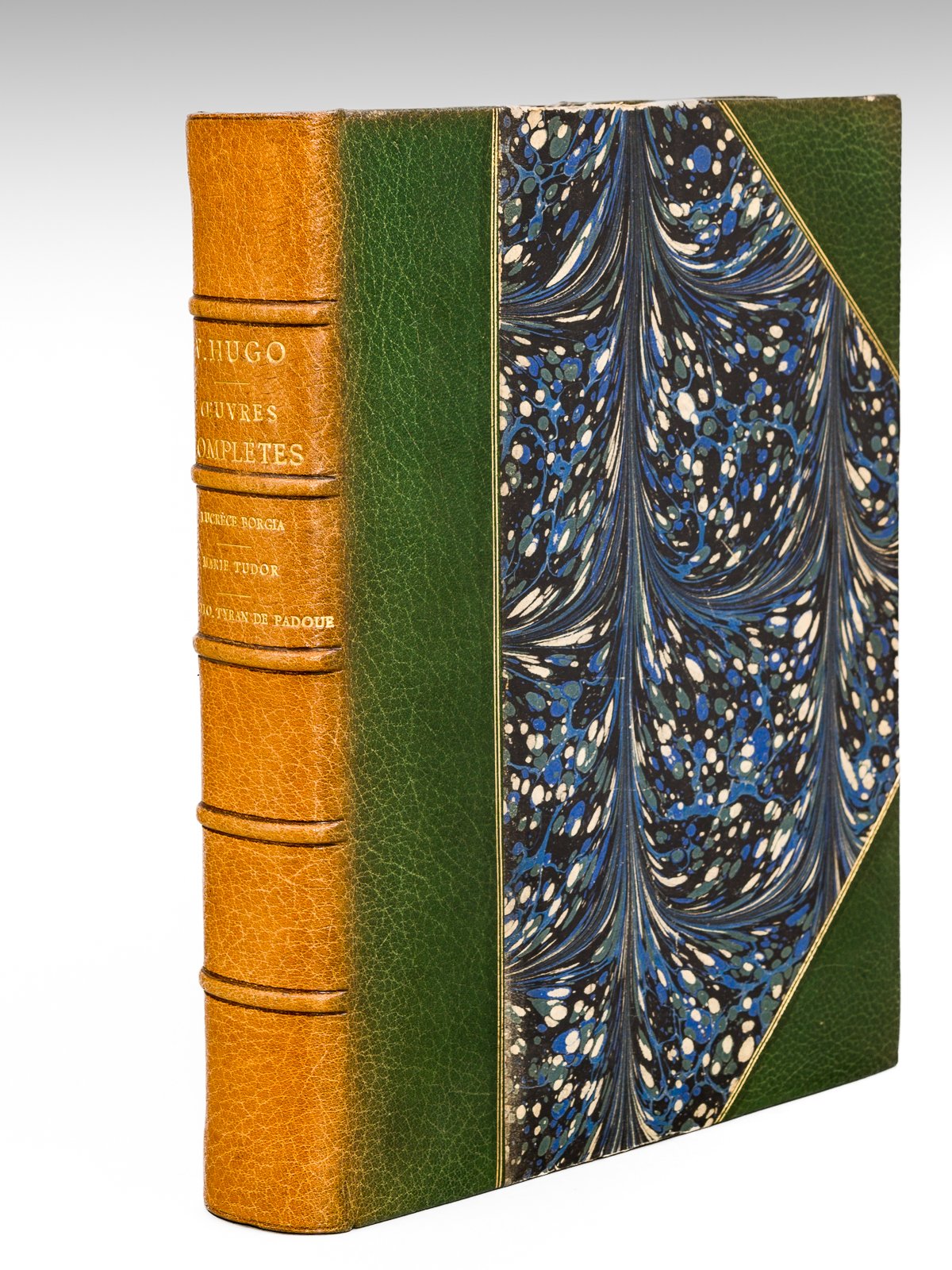 1 vol. fort in-4 reliure de l'époque demi-maroquin à coins vert, dos à 5 nerfs, double filet doré en mors et coins, tranche sup. dorée et finement ciselée, couverture conservée, Edition Nationale, Emile Testard, Paris, 1887, 2 ff., 629 pp. et 1 f. n. ch. avec 6 planches hors texte (eaux-fortes) avec vignettes dans le texte Belle édition appartenant à la célèbre "Edition Nationale" et réunissant les trois pièces de théâtre, établie dans une reliure de qualité en demi-maroquin à coins. La tranche supérieure est admirablement ciselée et finement dorée. Bon état (dos passé, très bon état par ailleurs). Vicaire, IV, 424