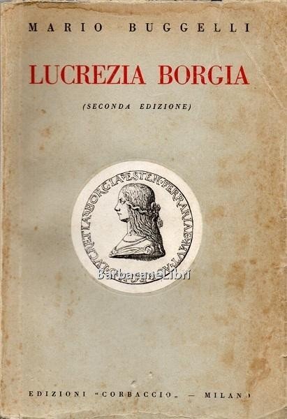 Volume d'epoca illustrato con numerose immagini in bianco e nero che riproducono ritratti, opere grafiche e documenti riguardanti Lucrezia, i Borgia e il periodo storico in cui vissero.
