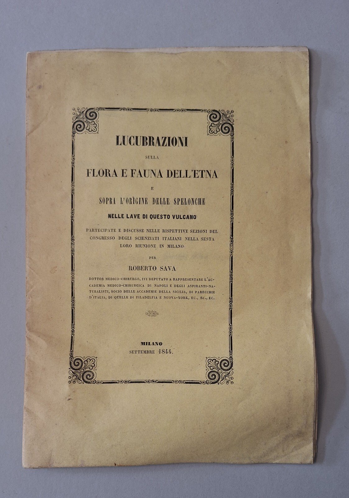 LUCUBRAZIONI SULLA FLORA E FAUNA DELL'ETNA L'ORIGINE SPELONCHE NELLE LAVE 1844