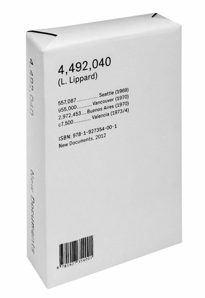 Between 1969 and 1974, the influential curator Lucy Lippard (born 1937) curated four decisive Conceptual art exhibitions, and in doing so reinvented the exhibition catalogue. <I>4,492,040</I> is a facsimile reprint of the extremely scarce and hugely important catalogues produced for those exhibitions: <I>557,087</I> (the Seattle Art Museum), <I>955,000 </I>(the Vancouver Art Gallery), <I>7,500</I> (the California Institute of Art) and <I>2,972,453 </I>(the Centro de Arte y Comunicación). Titled after the populations of the cities in which the shows were held, each catalogue was an envelope of loose note cards containing statements, documentation and conceptual works by each artist, to be rearranged, filed or discarded at will. If Lippard described Conceptual art as the dematerialization of the art object, these catalogues effectively announced the dematerialization of the art exhibition. (One reviewer claimed Lippard had been the artist, and that her medium had been other artists.) <I>4,492,040 </I>includes such iconic figures as Vito Acconci, Carl Andre, Siah Armajani, Terry Atkinson, John Baldessari, Michael Baldwin, Robert Barry, Rick Barthelme, Daniel Buren, Rosemarie Castoro, Hanne Darboven, Walter de Maria, Jan Dibbets, Christos Dikeakos, Eleanor Antin, Dan Graham, Hans Haacke, Eva Hesse, Douglas Huebler, On Kawara, Edward Kienholz Sol LeWitt, Roelof Louw, Duane Lundon, Bruce McLean, Robert Morris, N.E. Thing Co., Bruce Nauman, Adrian Piper, Allen Ruppersberg, Ed Ruscha, Richard Serra, Robert Smithson, Jeff Wall and Lawrence Weiner. — Testi: Lippard Lucy . F.to: 16x10; pagg. 460; rileg. rigida. Editore: New Documents, Vancouver, 2012.