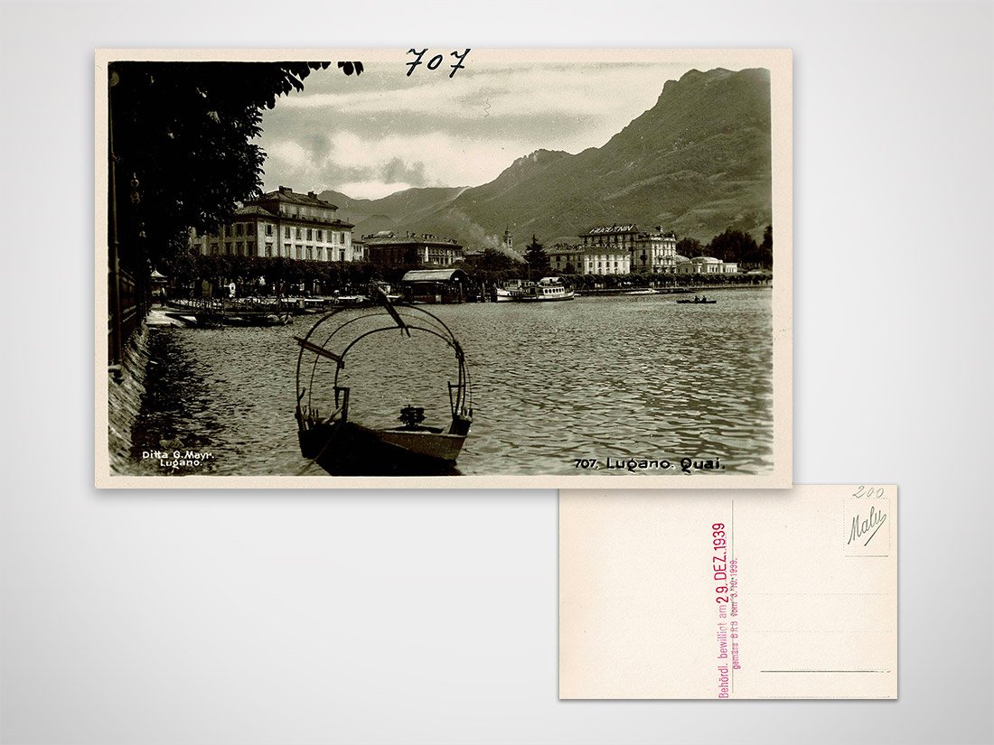 Cartolina Lugano - il Quai, timbro in originale di approvazione della Confederazione, non viaggiata Dimensioni: 9 x 14 cm