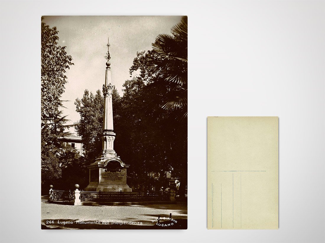 Cartolina Lugano monumento dell'Indipendenza, non viaggiata  Dimensioni: 13,7 x 8,7 cm