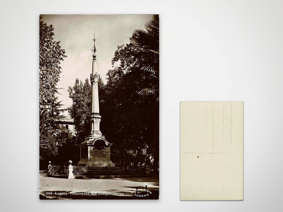 Cartolina Lugano Monumento dell'Indipendenza, non viaggiata Dimensioni: 8,9 x 13,7 cm