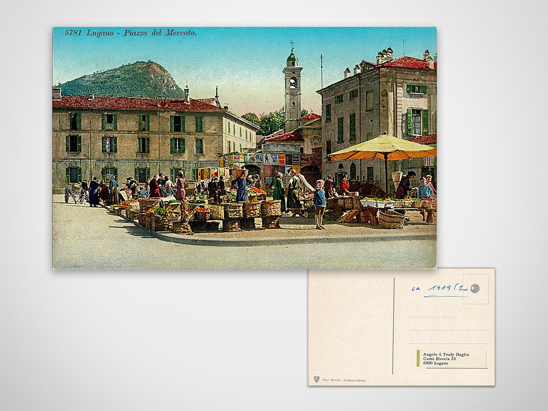 Cartolina a colori, Lugano piazza del Mercato non viaggiata Dimensioni: 14x9 cm